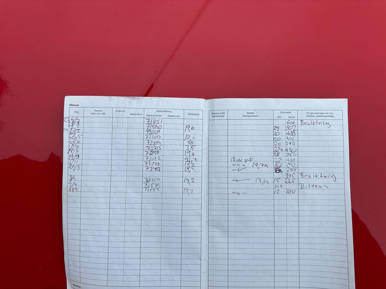 Noggrant ifylld service/körjournal