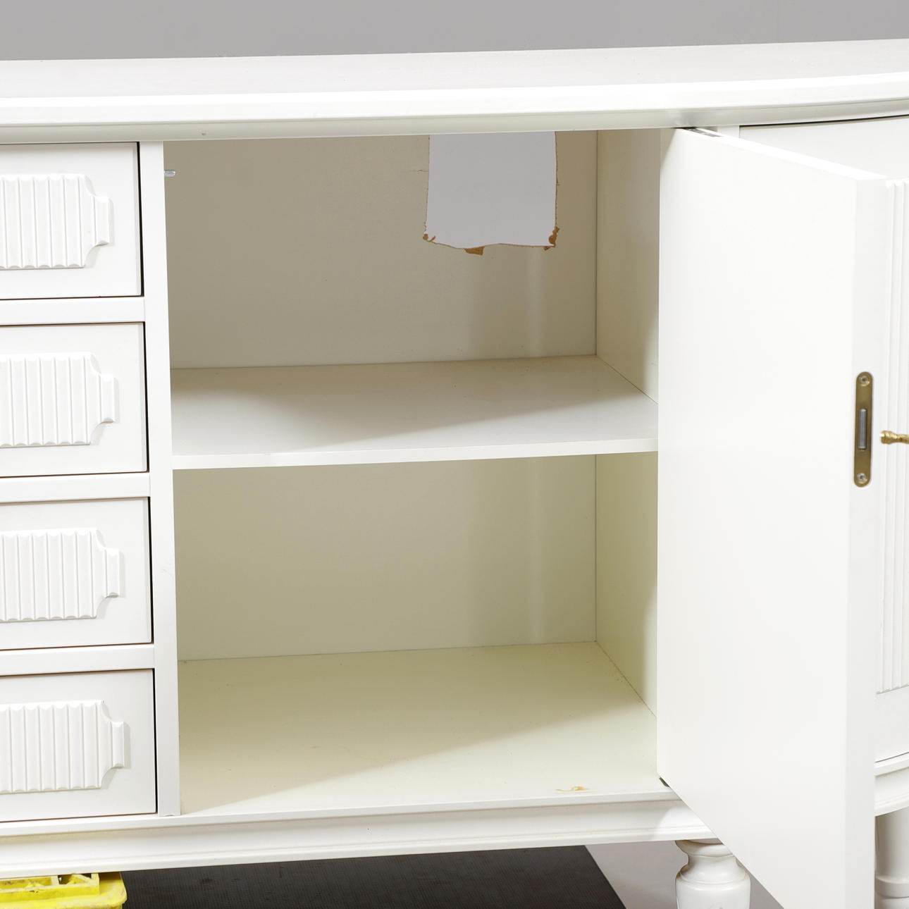 Färgskav, fläckar, baksida med hål.