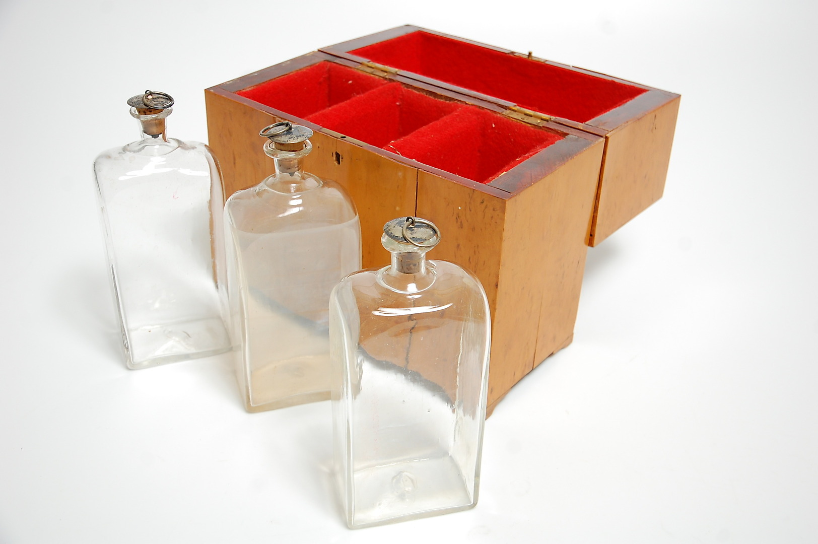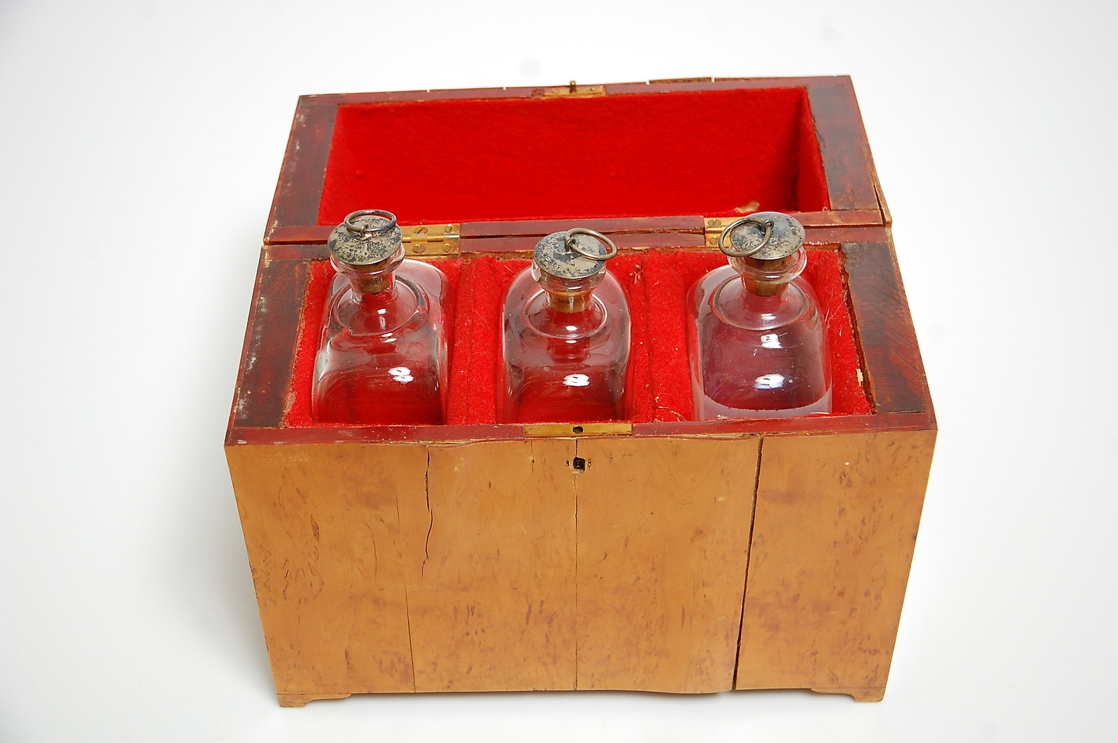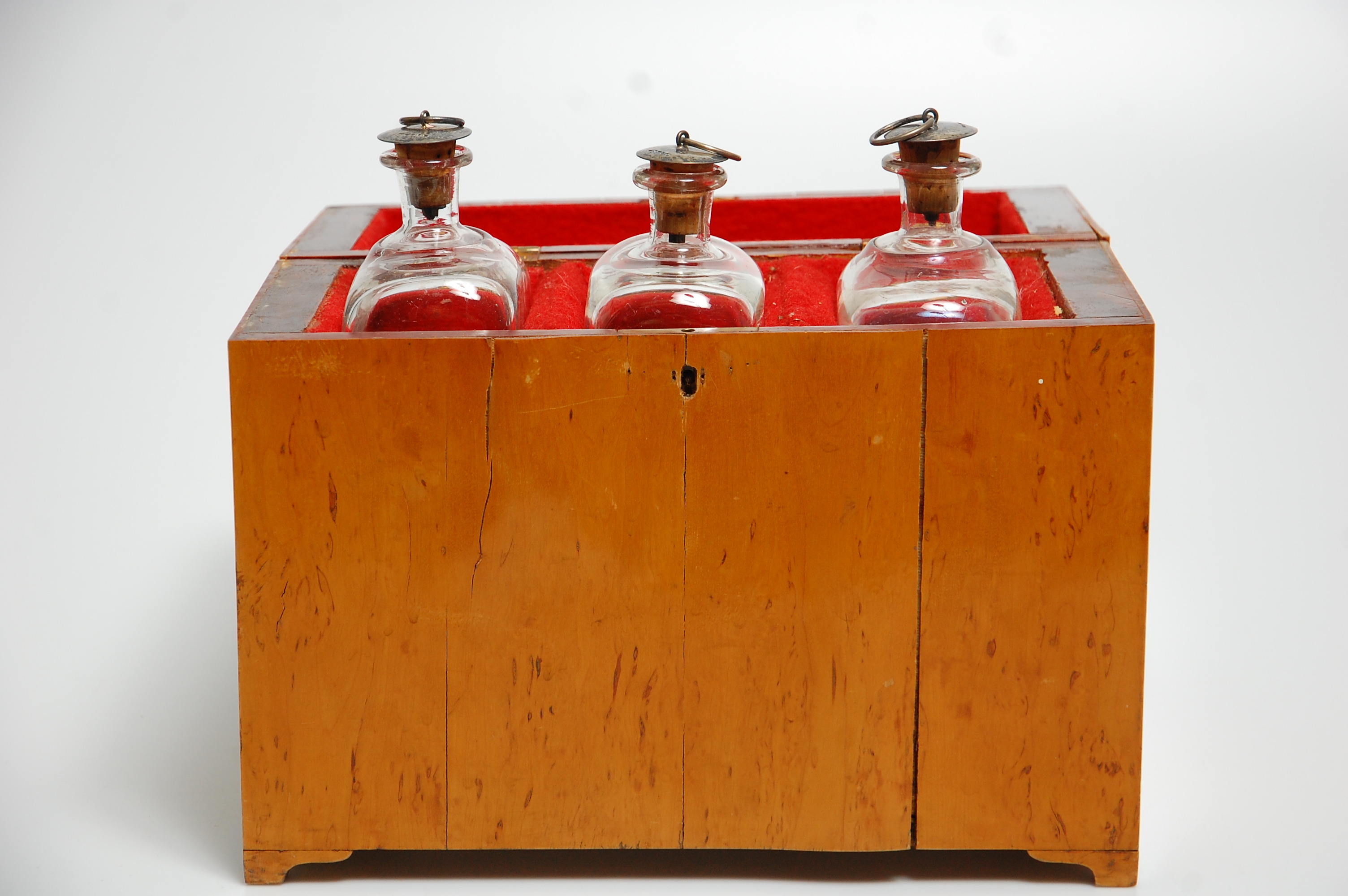 422206. FLASKSCHATULL, björkrot, korkar silver 18-1900-tal.