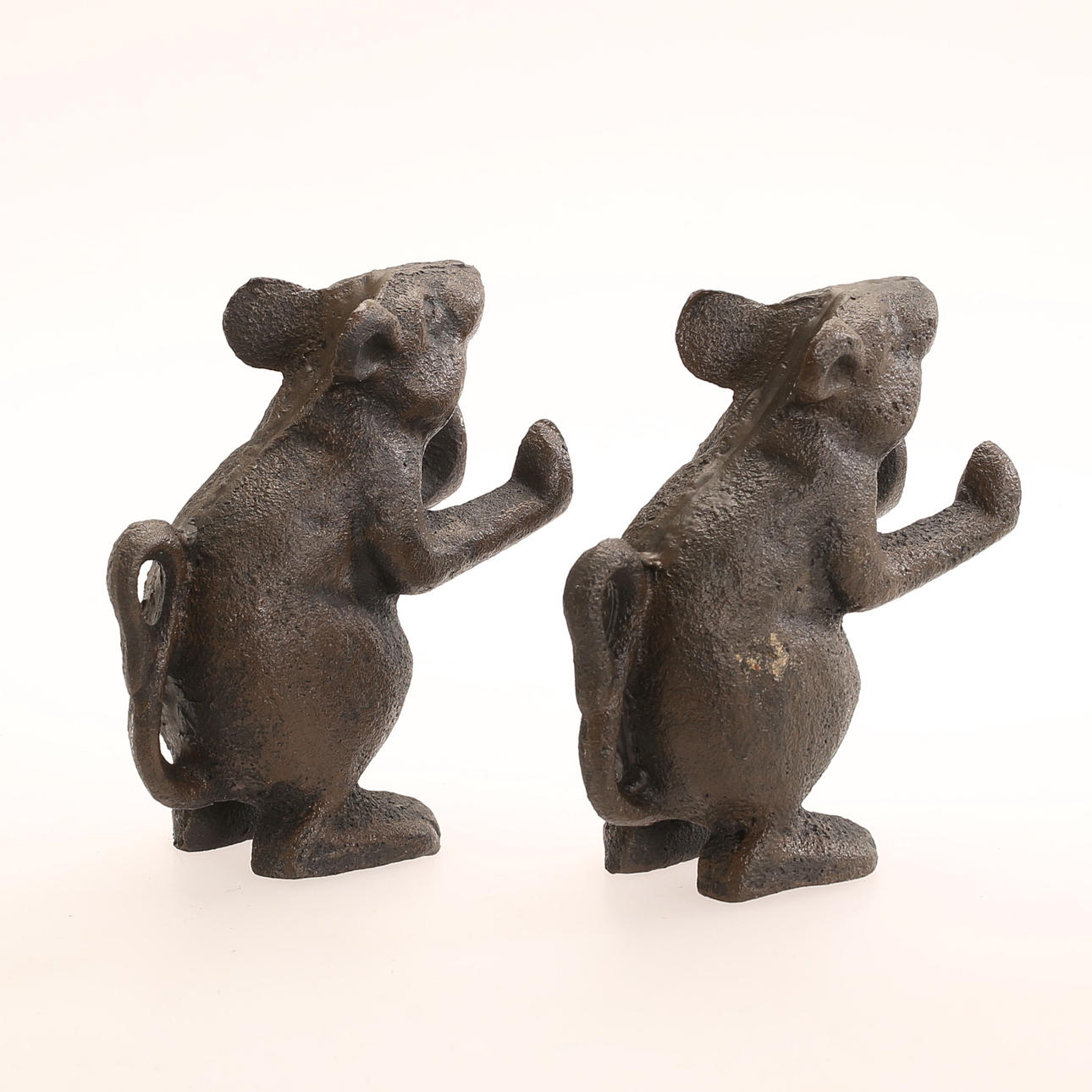 BOKSTÖD, 2 stycken, möss, gjutjärn, samtida.