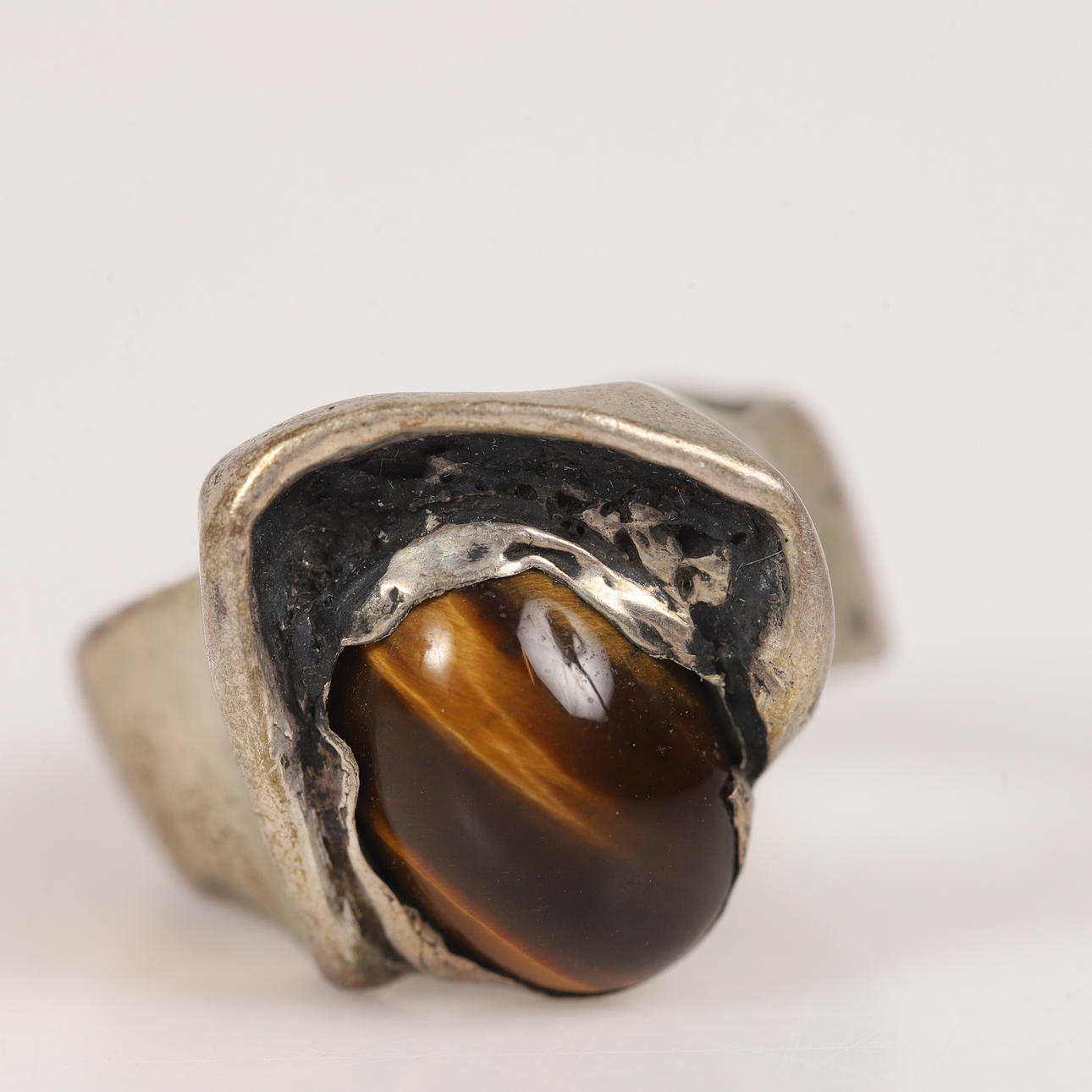 RINGAR, 4 stycken, silver med stenar, bl. a. tigeröga.