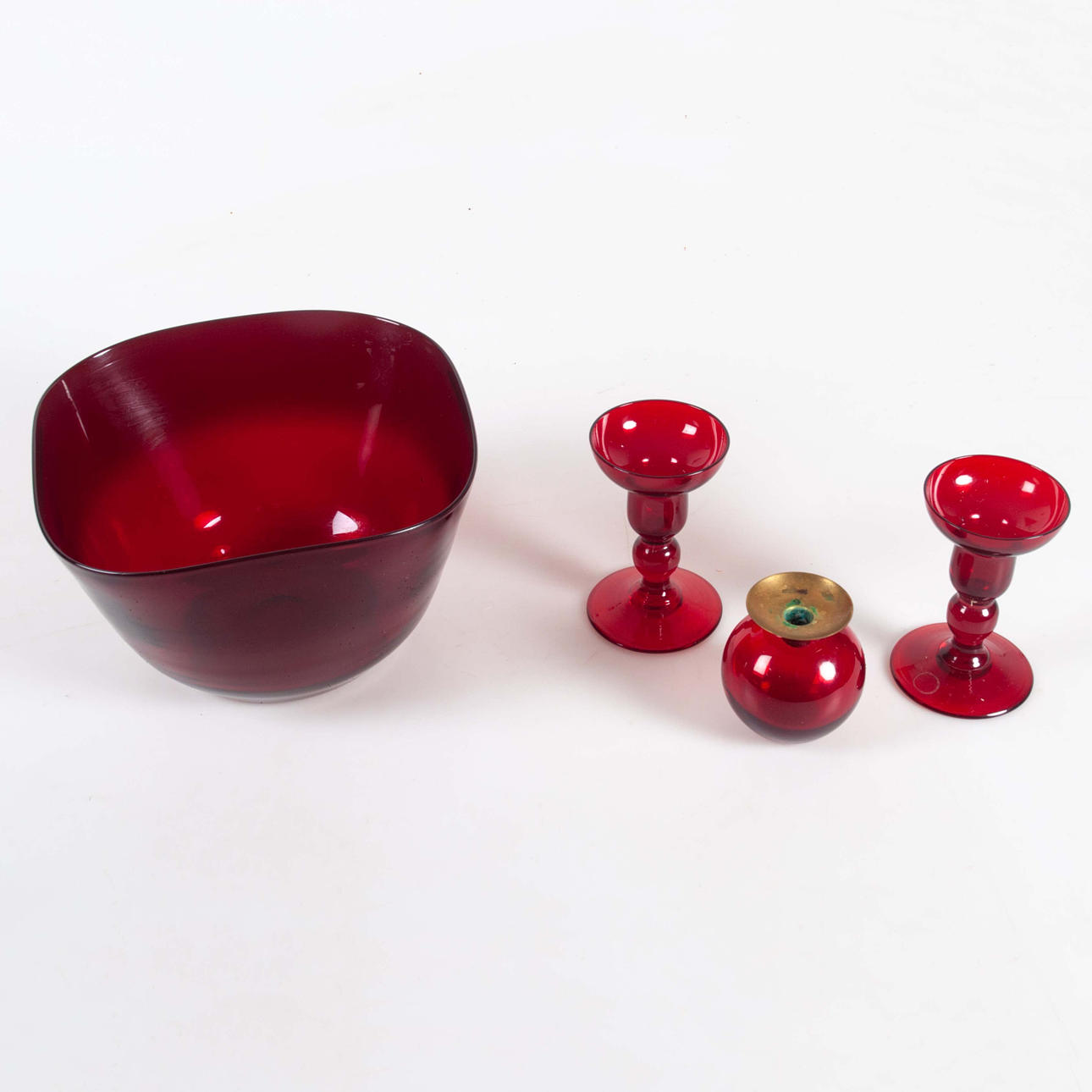 RÖTT GLAS, 50-60-TAL 4 DELAR.