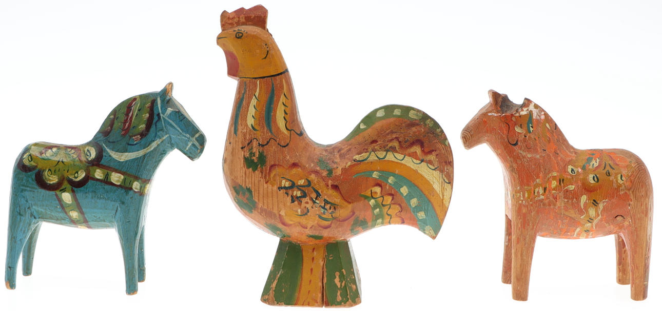 4227699. DALAHÄSTAR & DALATUPP, 3 st, målat trä.