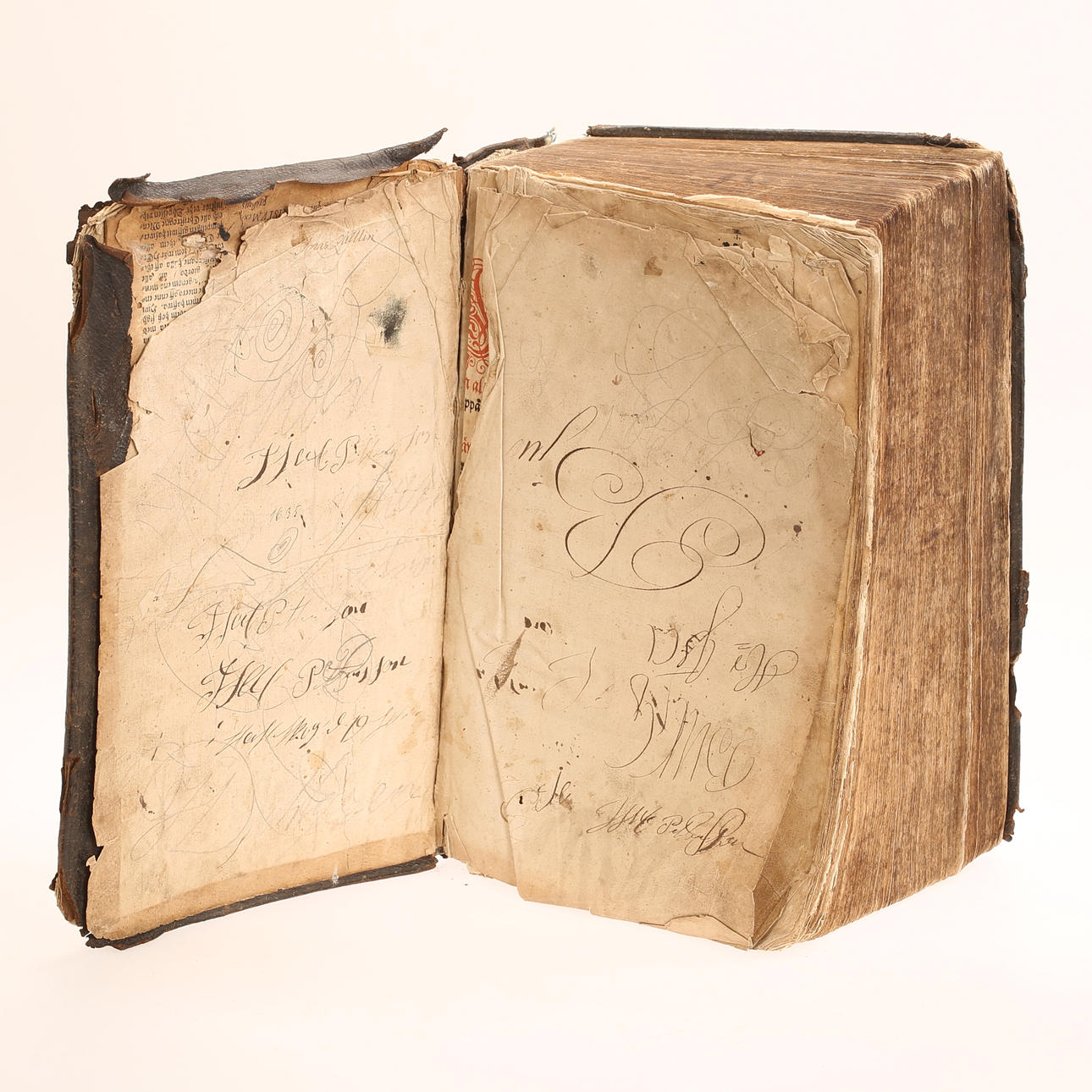 Den kristliga kyrkliga historia, D. Lucae Osiandri (1534-1604) författare, mått höjd ca 37 cm, ca 23 x 17 cm.