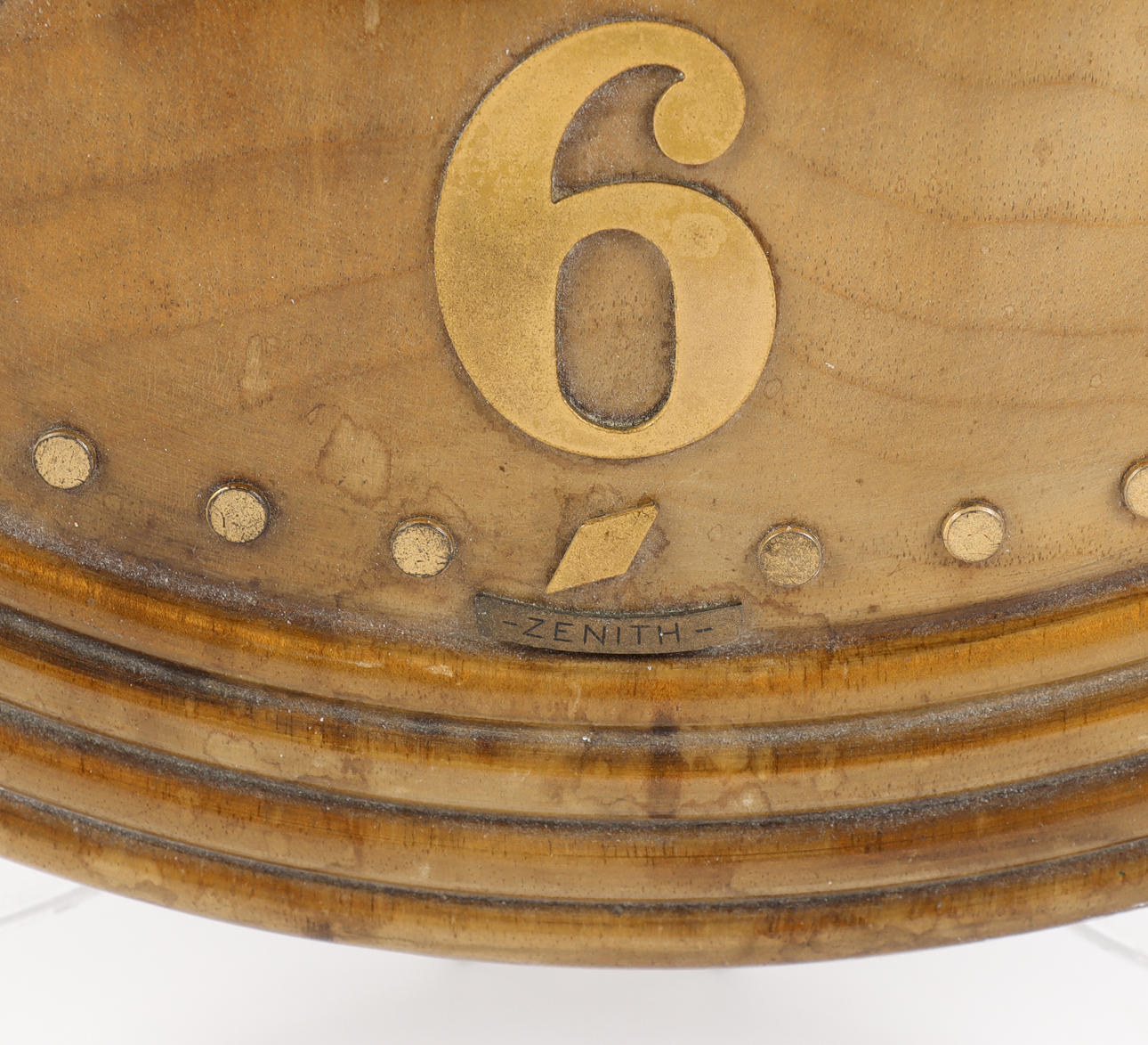 Ek, med siffror och visare i mässing.