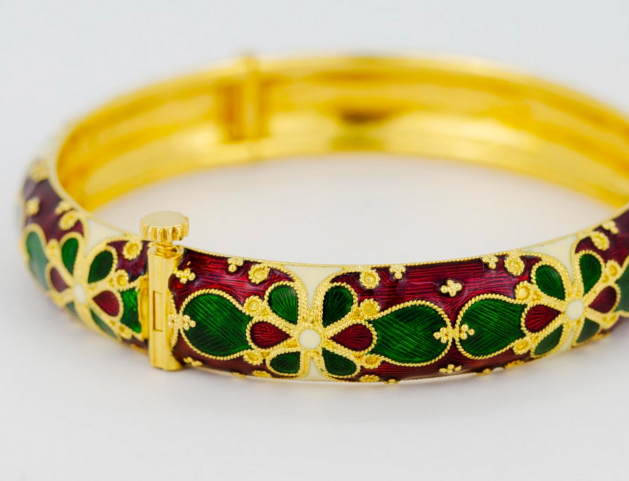 22KT GULT GULD OCH EMALJERAD ARMRING.