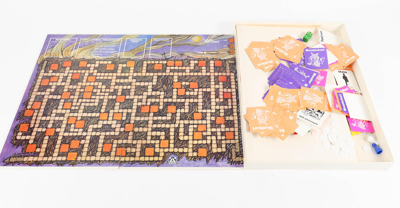Drakskatten, Äventyrsspel, med spelplan, pjäser, kort och marker.