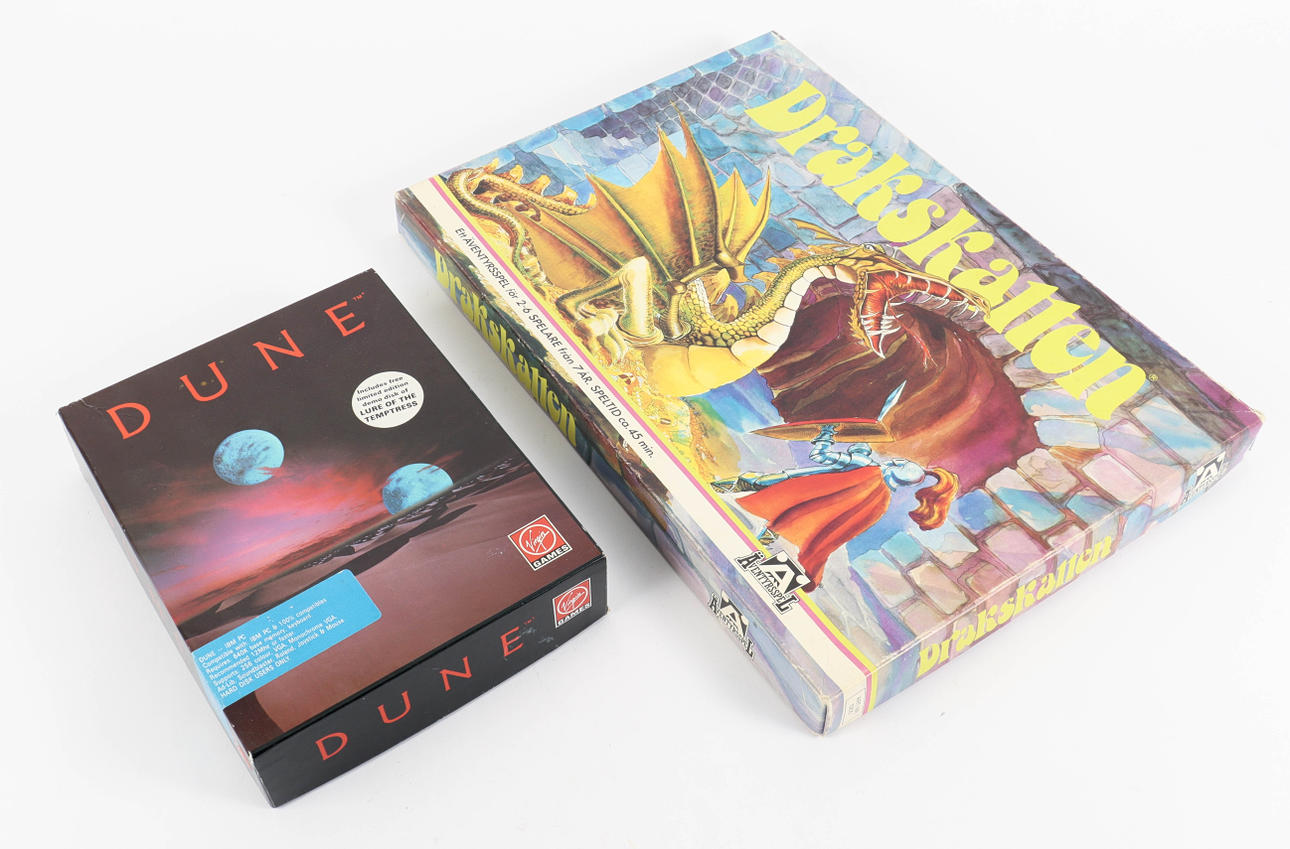 Dune Virgin Games, 3 st 1 1/2 disketter och poster, i orginalkartong.