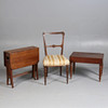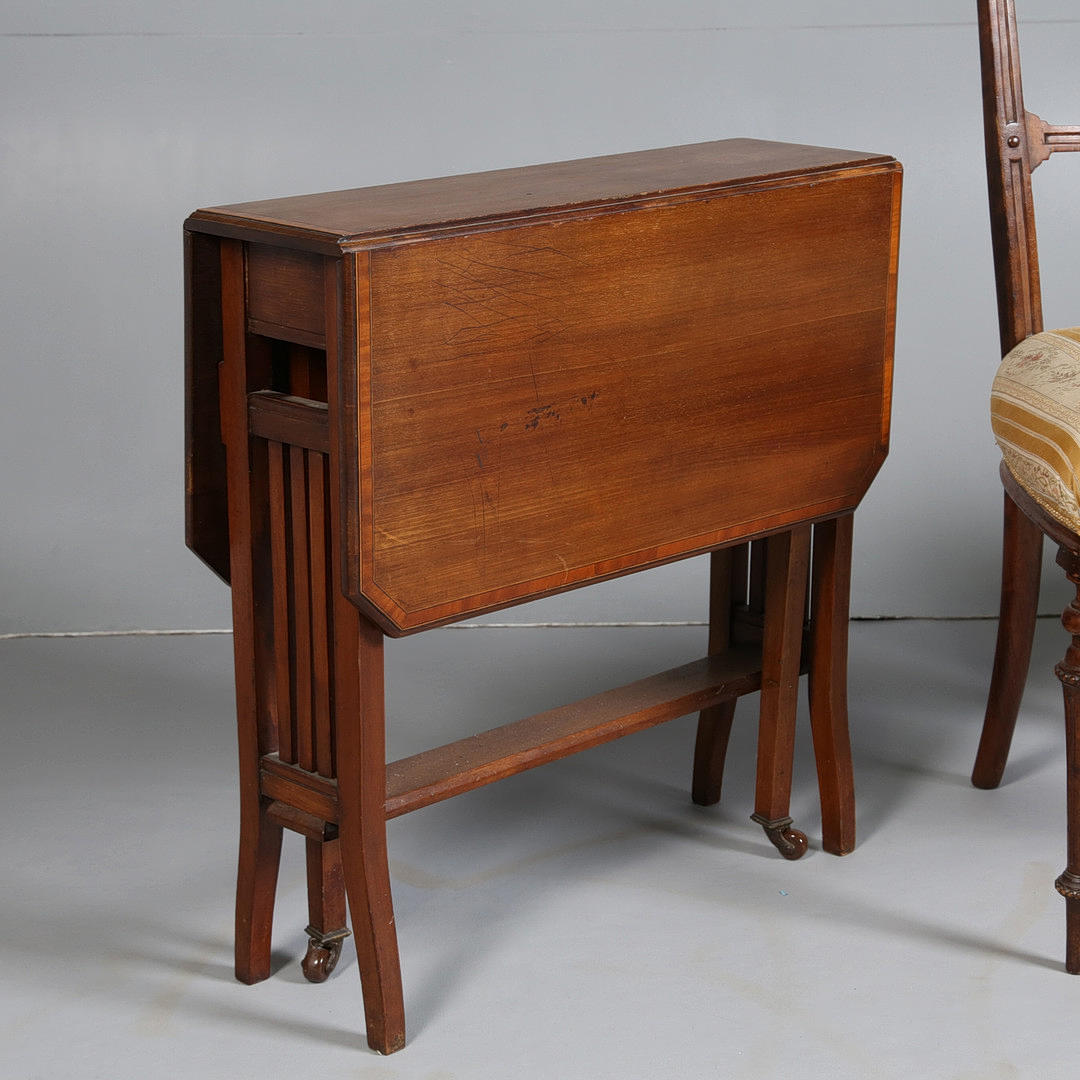 För att inkludera ett edwardiansk sutherland-bord, 60 cm brett 61 cm högt 19 cm djupt, och en sovrumsstol från början av 1900-talet 86 cm hög 45 cm bred och en mahognykommode 58 cm bred.
