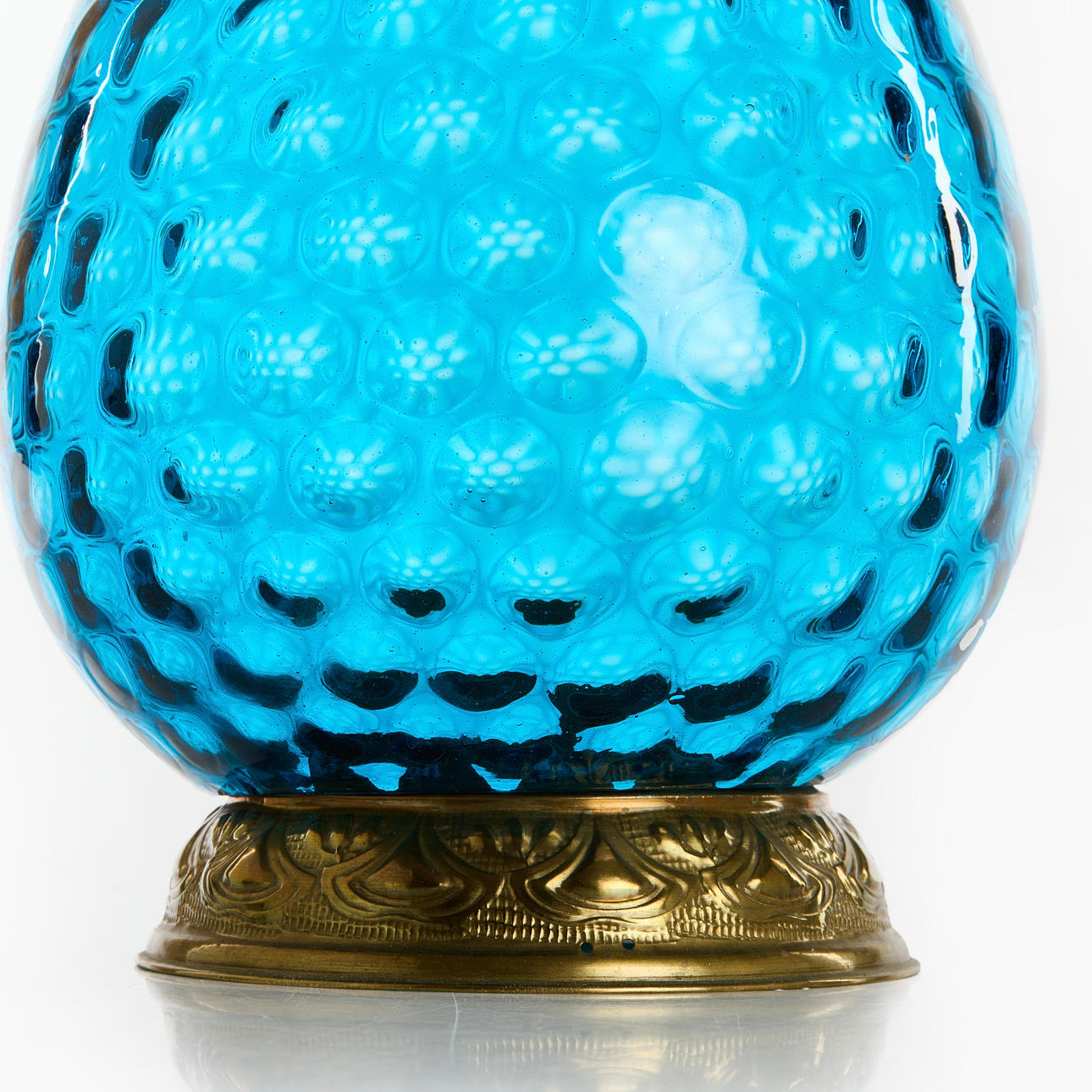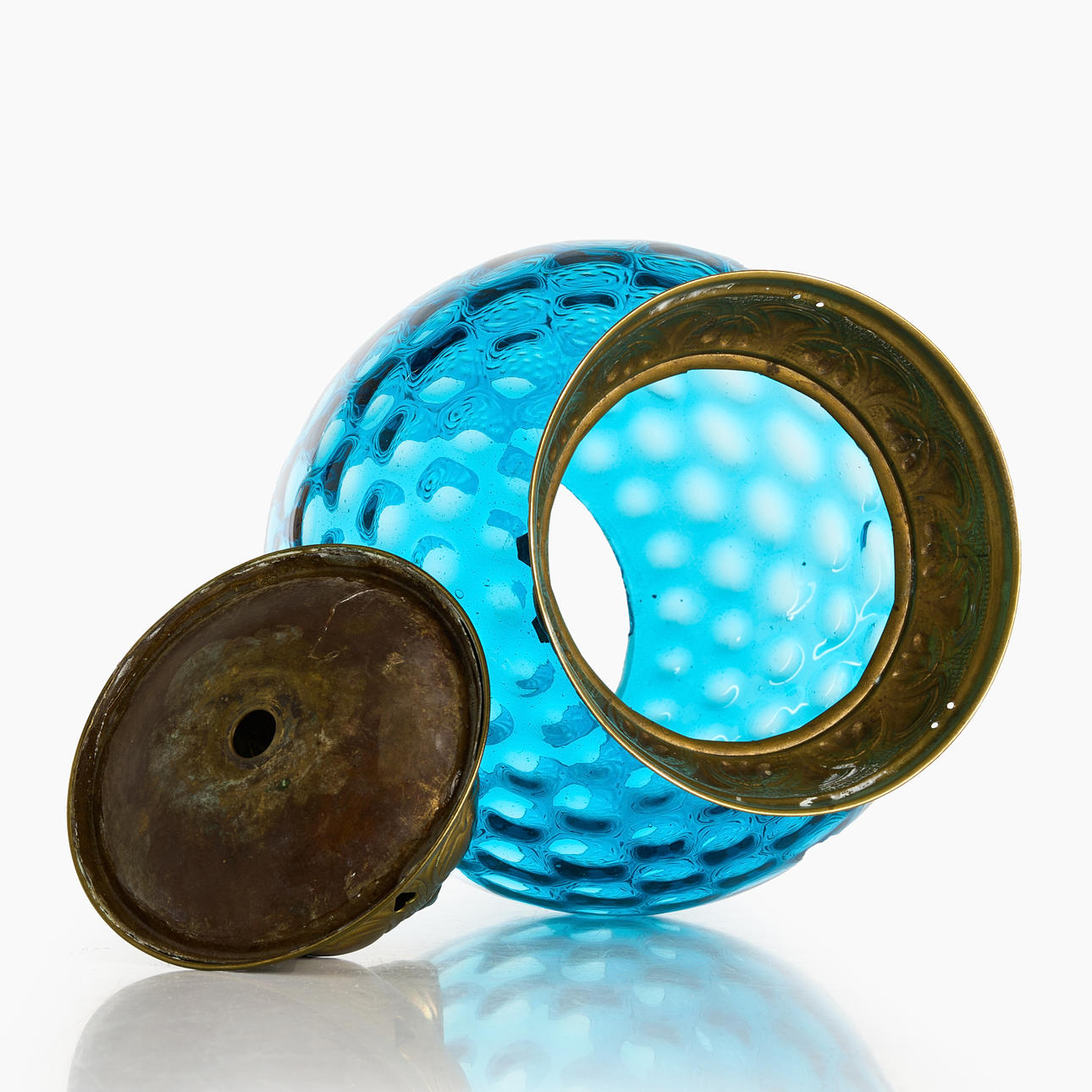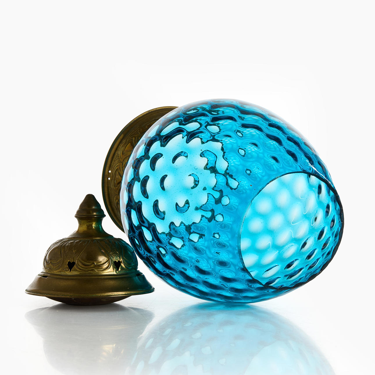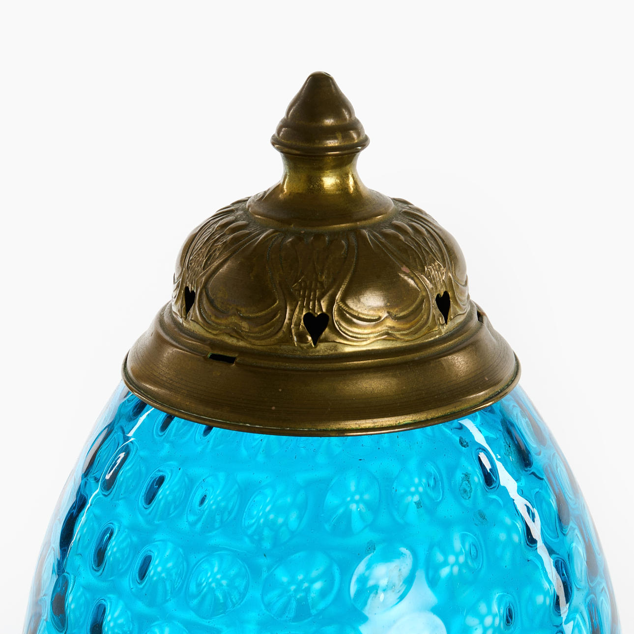 4235970. MÅNSKENSLAMPA, ej komplett, blått glas, mässing.