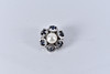 4236429. BROSCH, med blå stenar och pärla, silver.