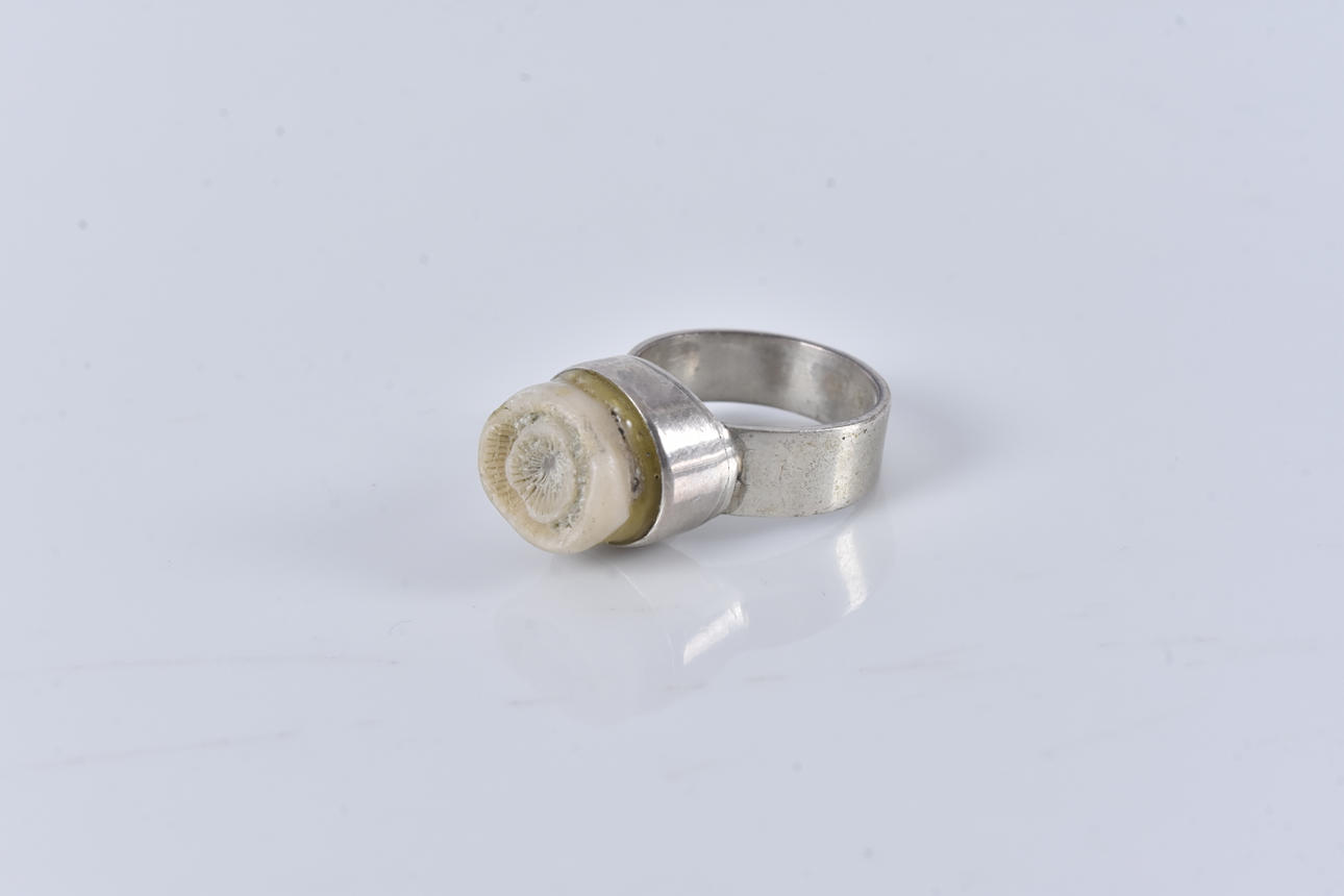 4236465. RING, med ros i vit sten, Silversmedjan Klippan 1971, silver.