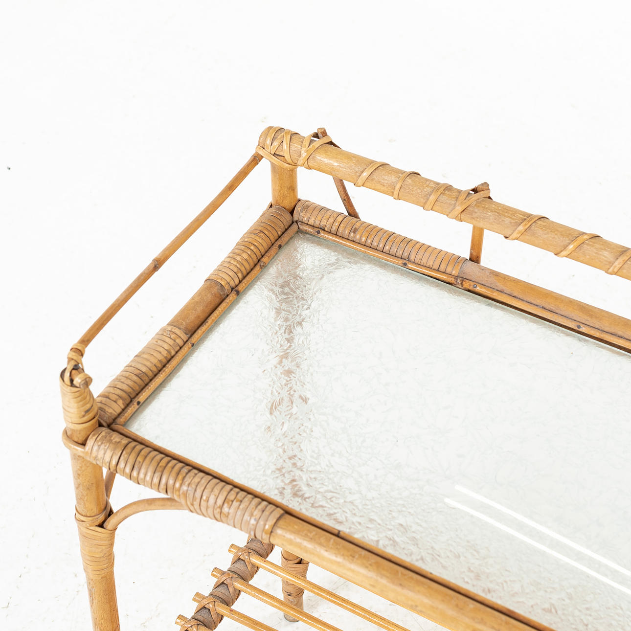 BLOMBORD, glas & bambu, omkring 1900-talets mitt.