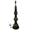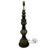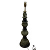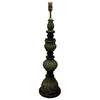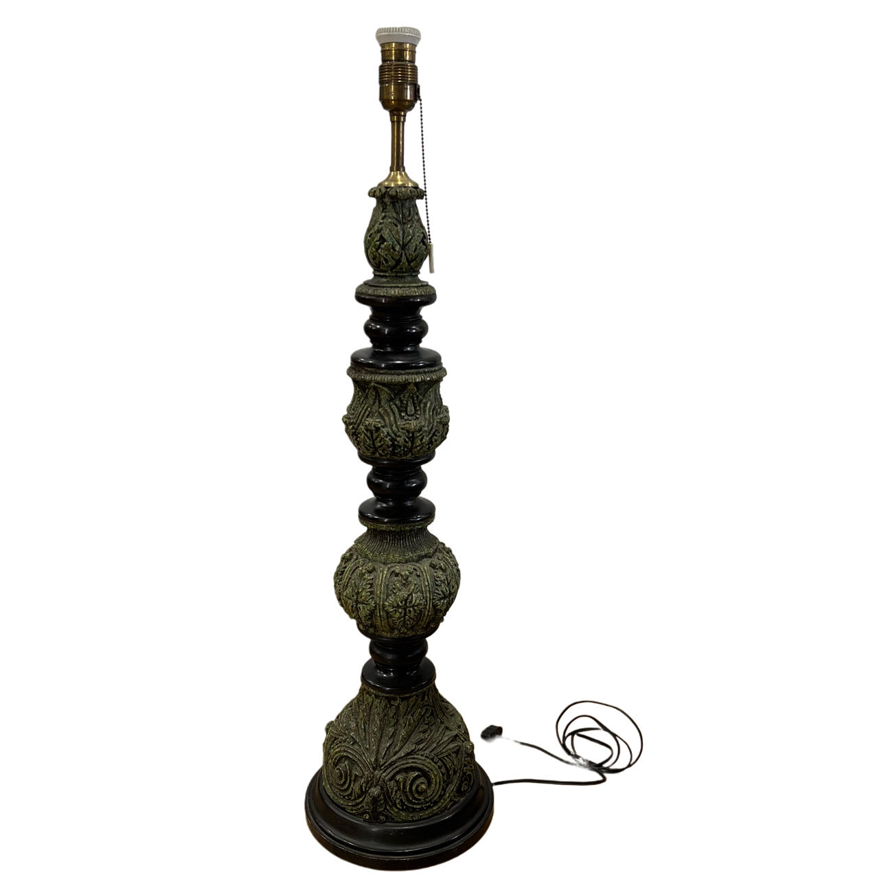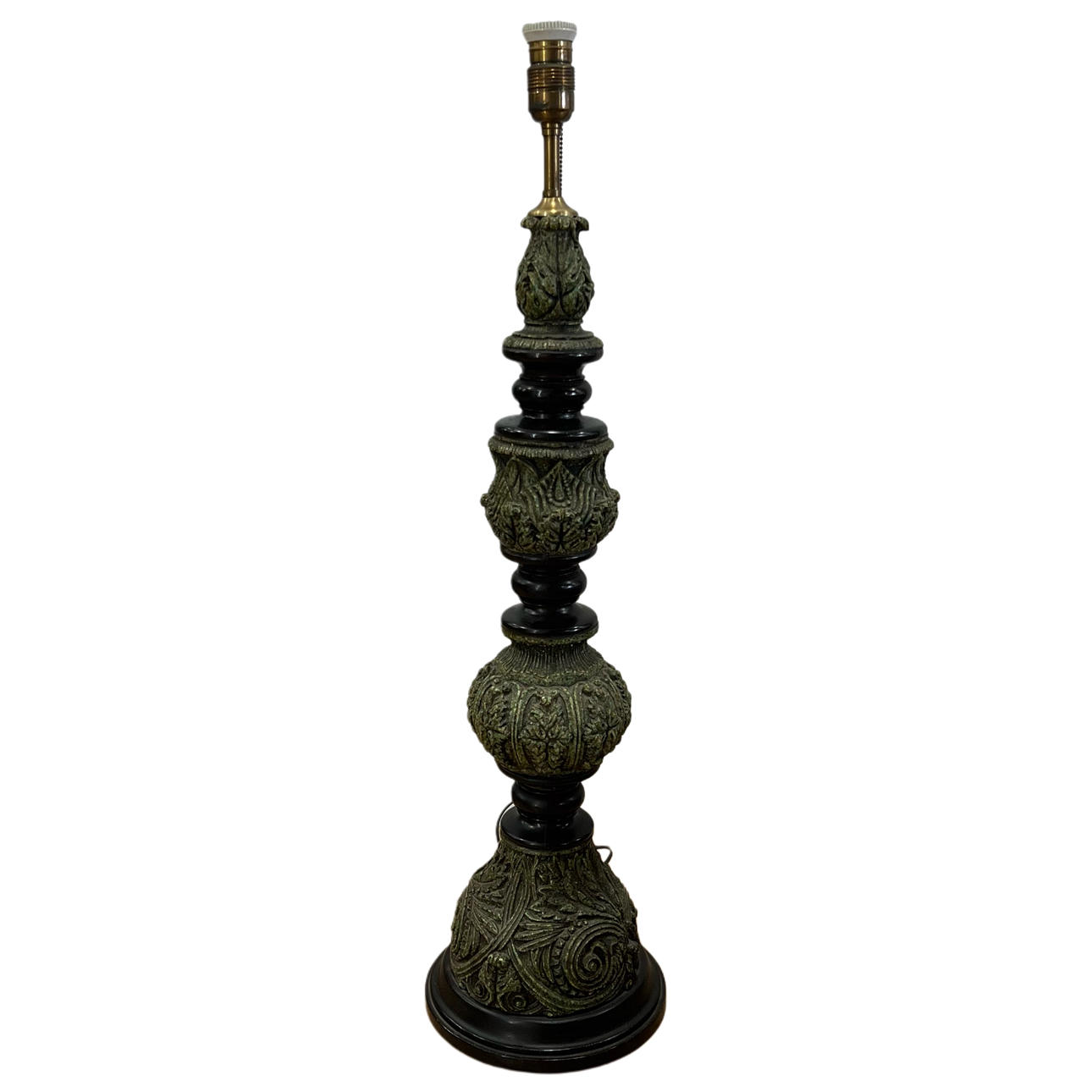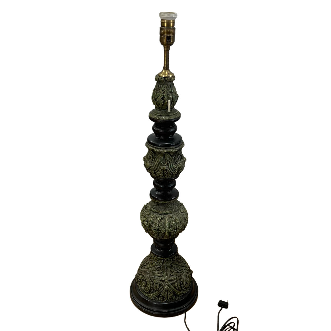 Stor bordslampa balustrerad i grön sandsten med träfinish.