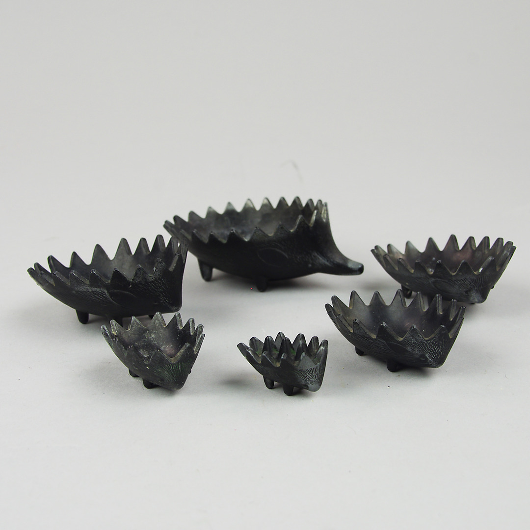423747. ASKFAT i form av igelkott, 6 delar, smide.
