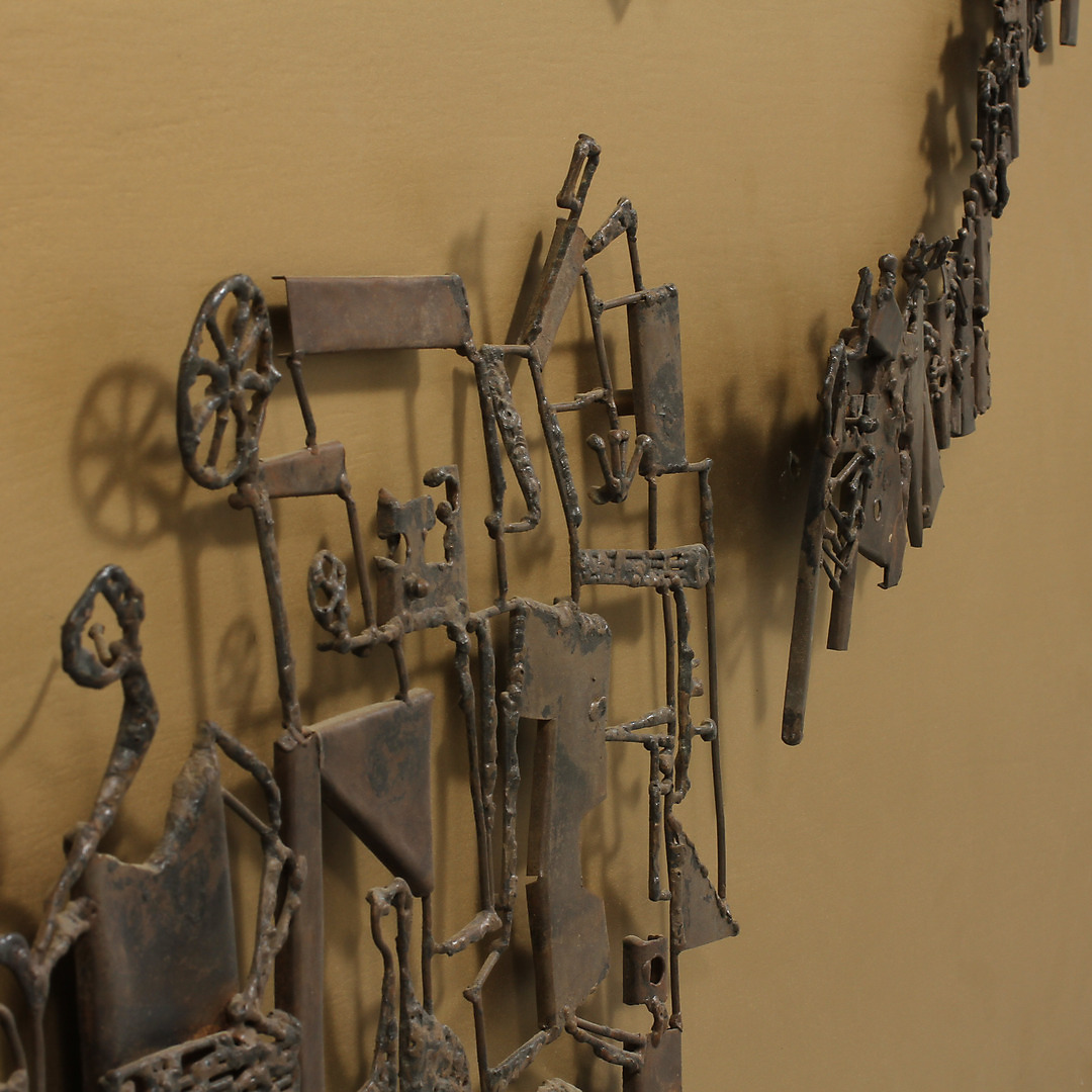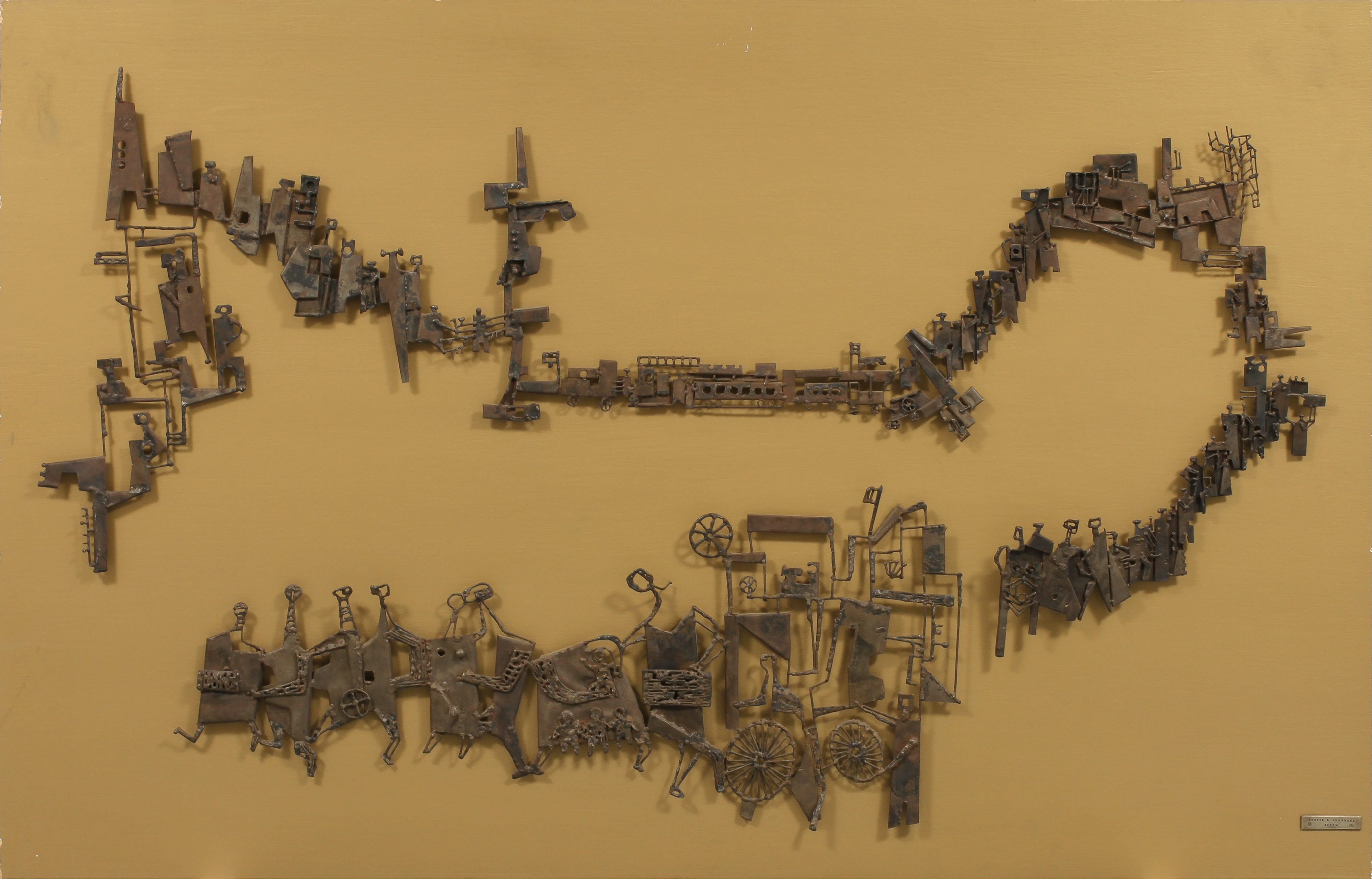 423815. BERTIL L BERGGREN. Väggrelief, metall, monterad på träskiva.