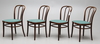 Klassiska caféstolar i brunbetsad bok.