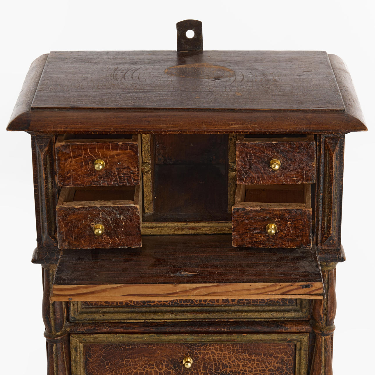 Slitage, skador, renoverad med senare list och knoppar.