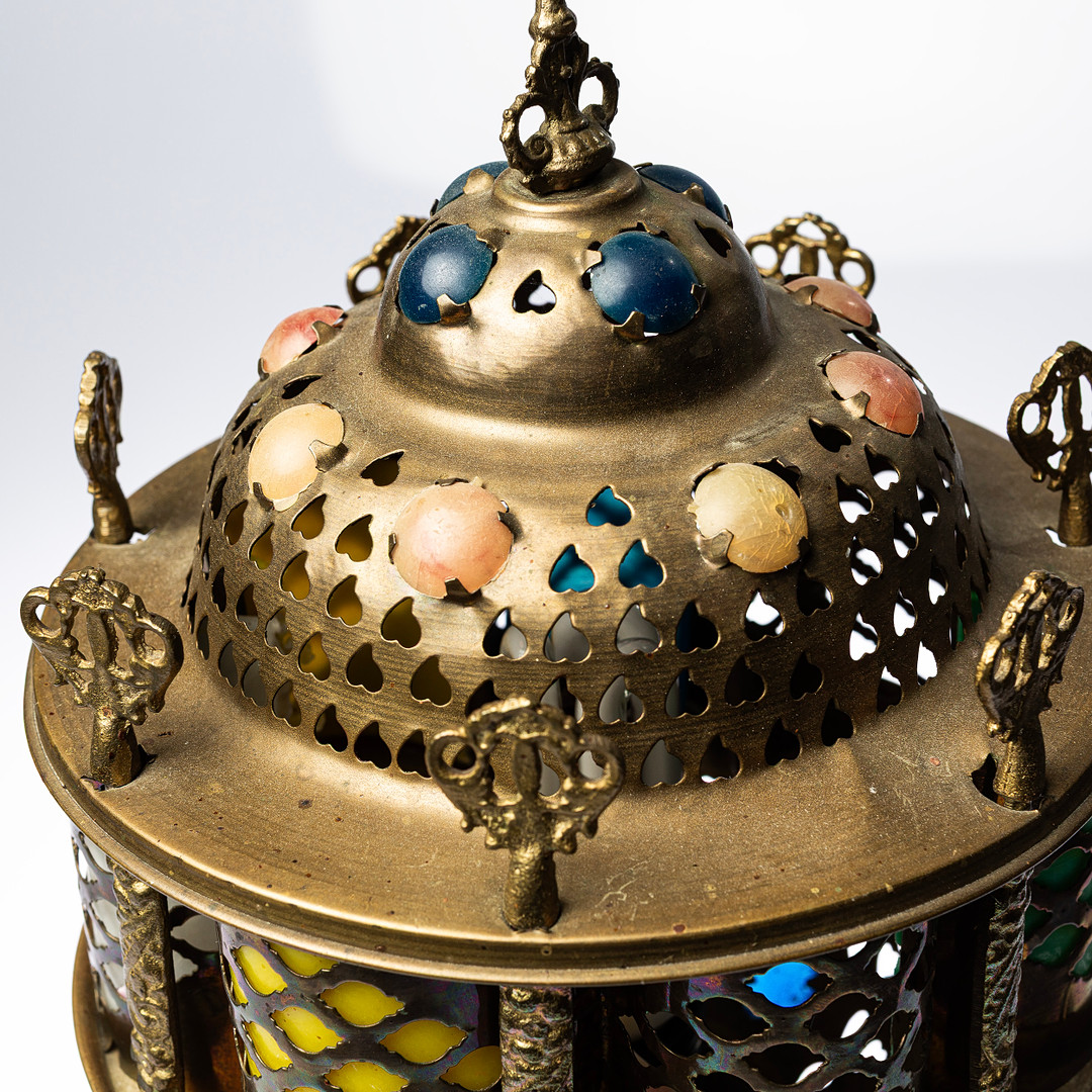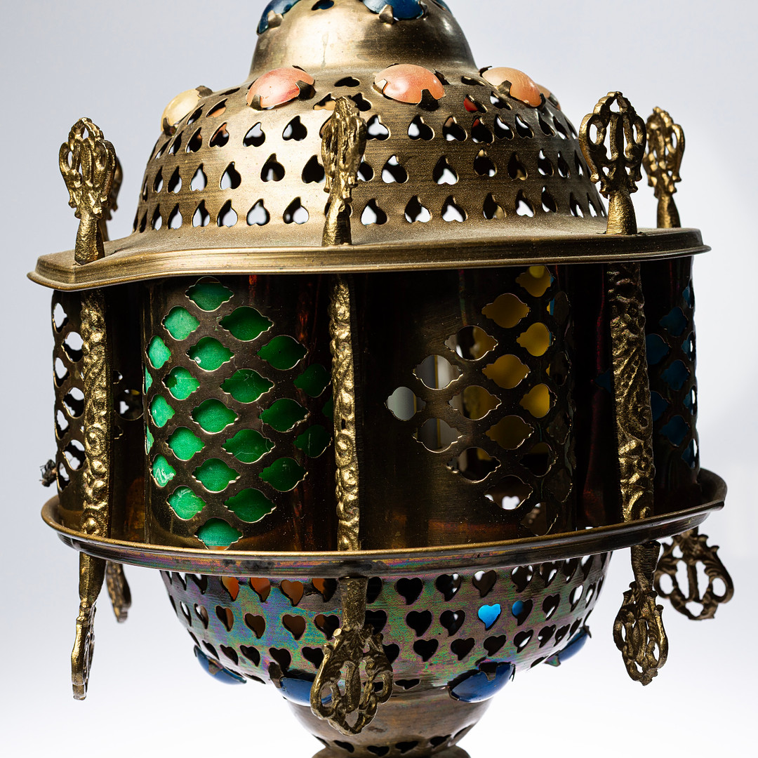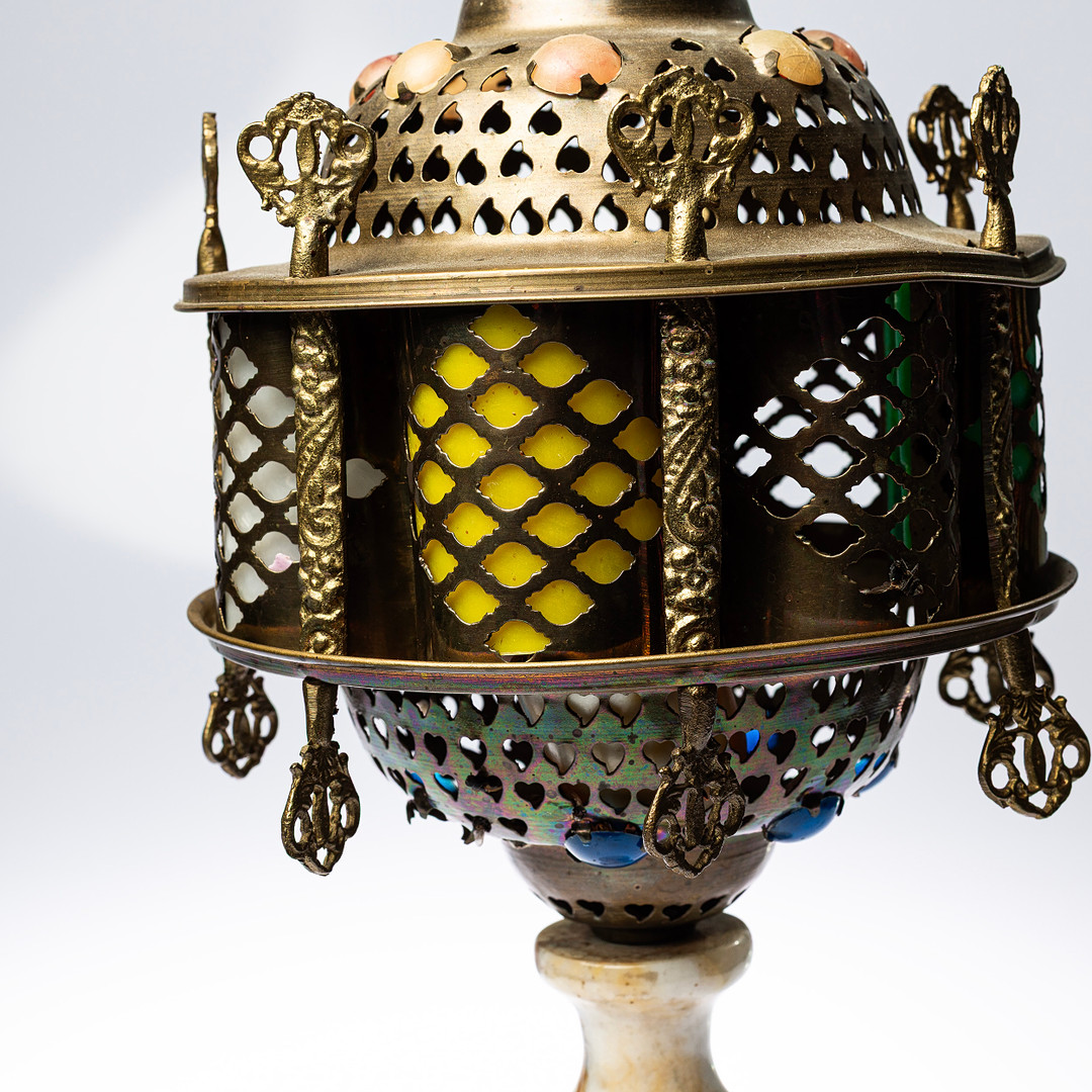 4240453. BORDSLAMPA, mässing & sten, orientalisk.