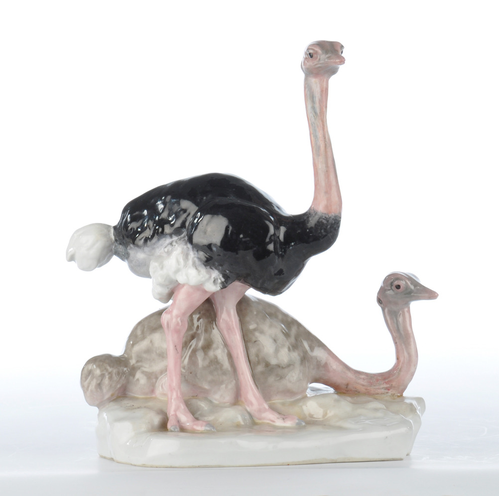 424080. PORZELLANMANUFAKTUR ENS. TILLSKRIVEN. Stående och liggande struts.