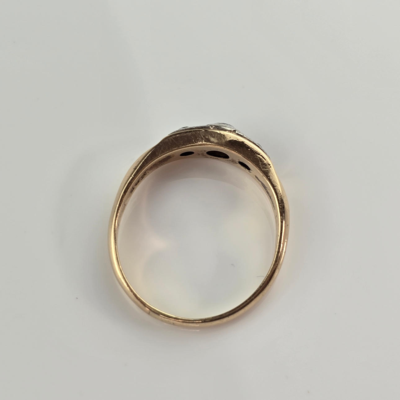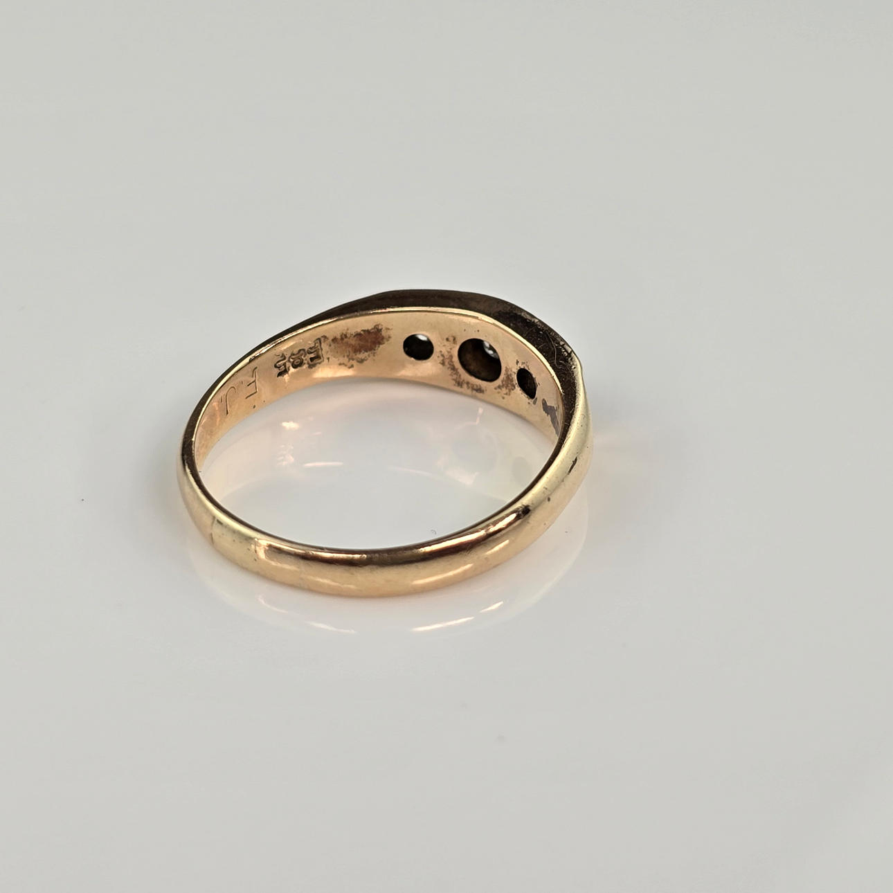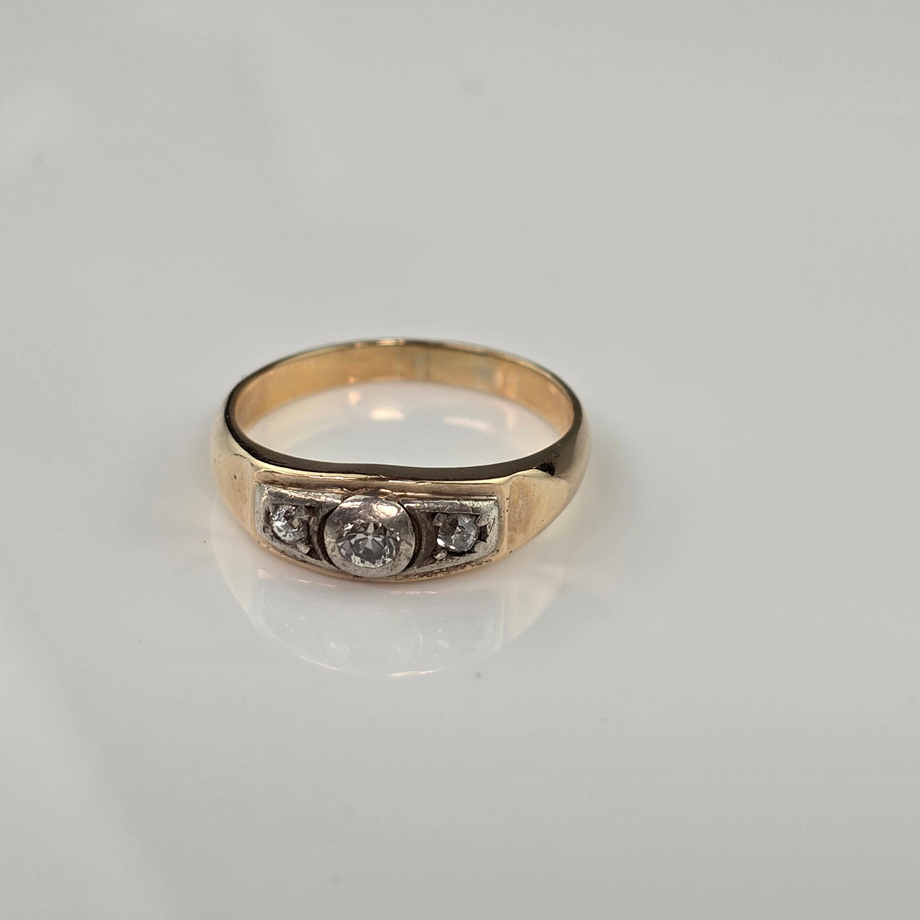 Guldring med diamanter - 585 gult guld, stämplat, Uppsatt med tre diamanter totalt ca. 0,4 ct. ,