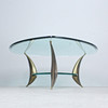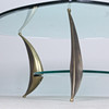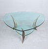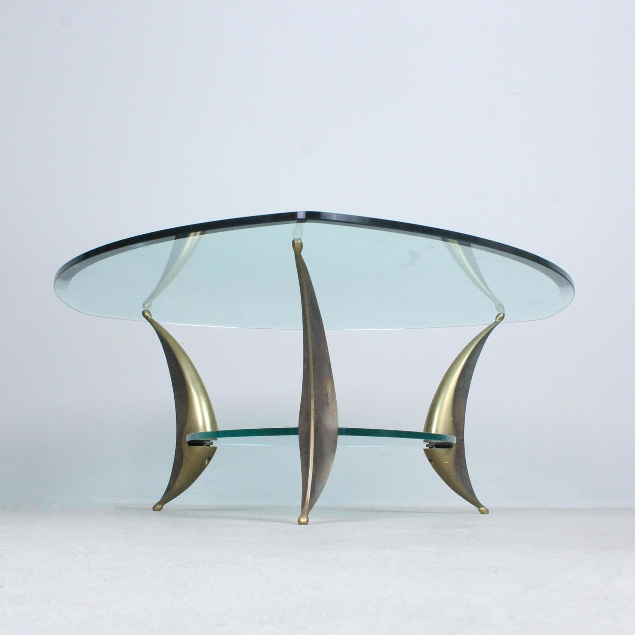 Tripod soffbord/soffbord, 1970-tal, bordsben i mässing, bordsskivor i glas, Mått ca.: h 41 cm, b 97 cm, djup 99 cm.