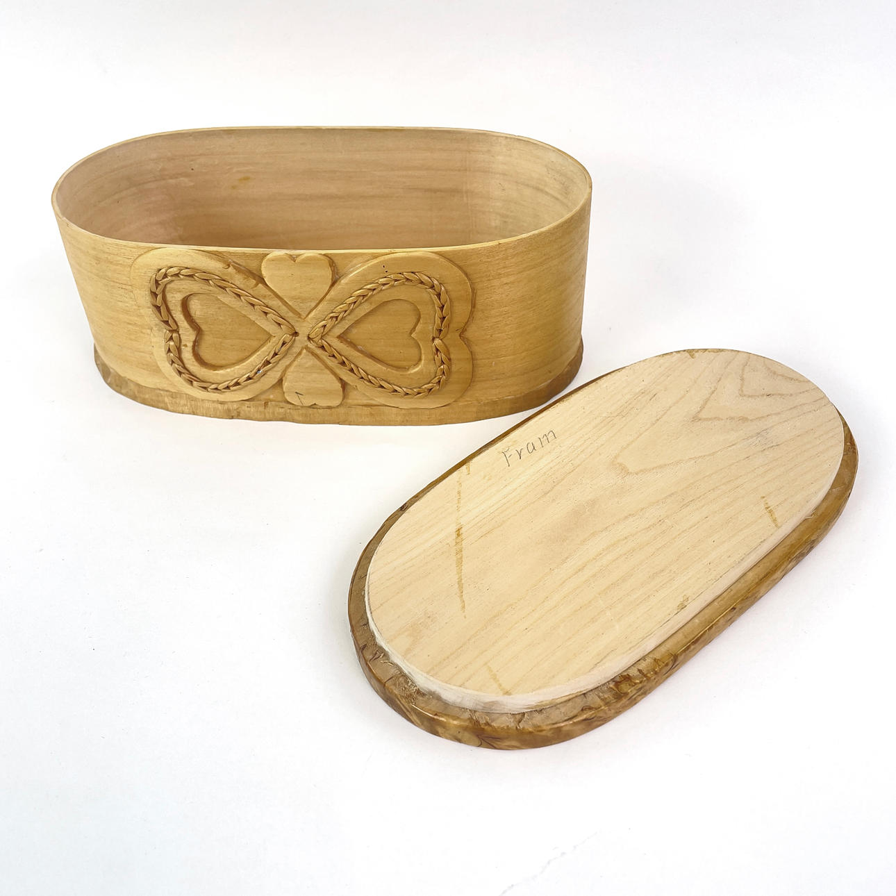 Två st svepaskar / lådor med lock. Snidat trä. Den ena asken är signerad "1971 EB"