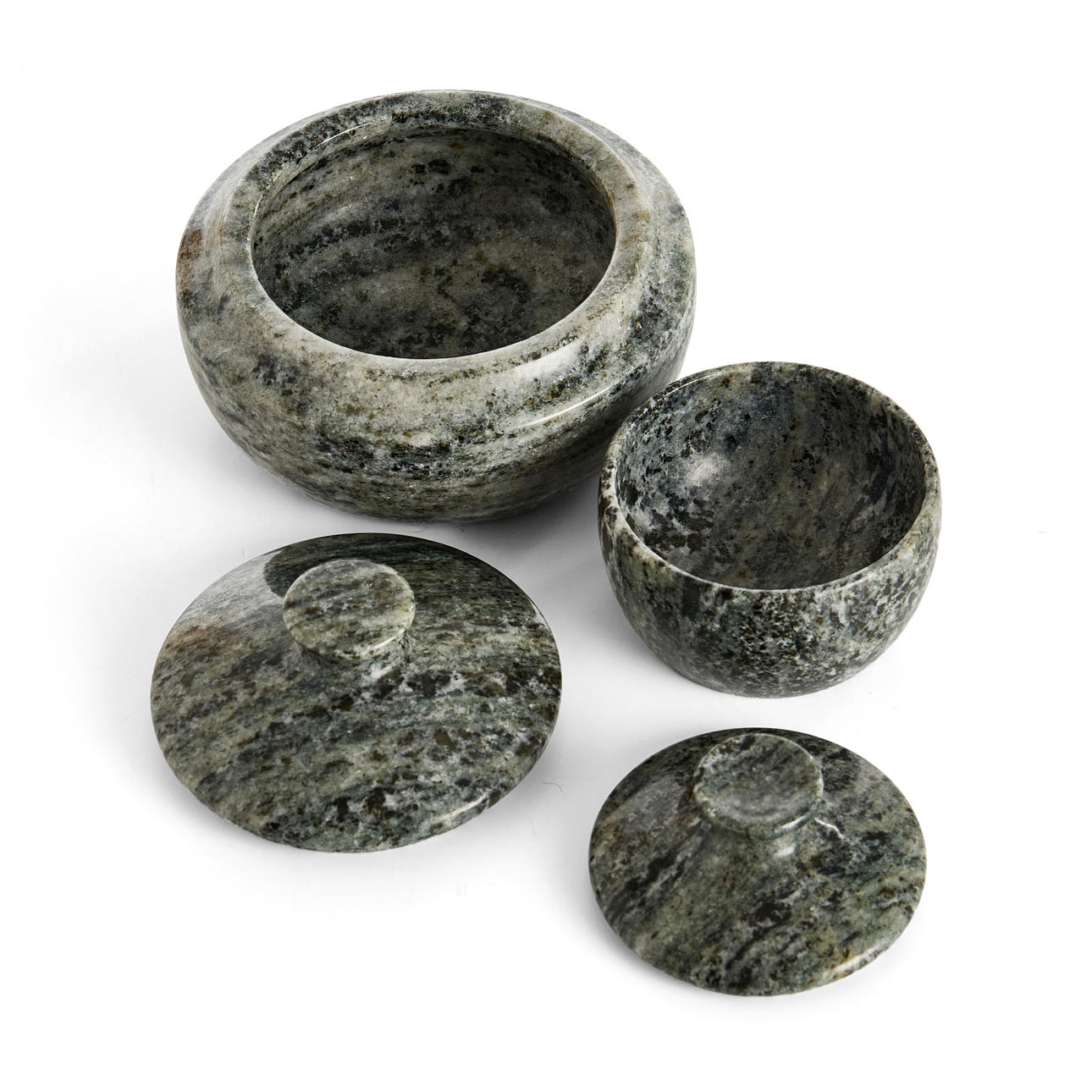 4243538. LOCKDOSOR, 4 st, kolmårdsmarmor, 1900-tal.