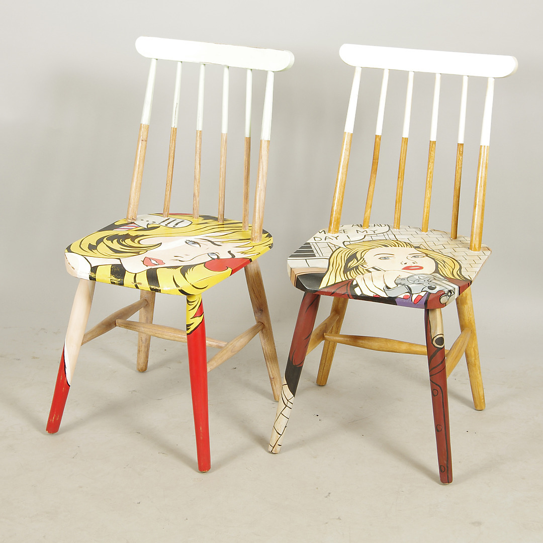 424440. PINNSTOLAR, 1 par, dekormålade.