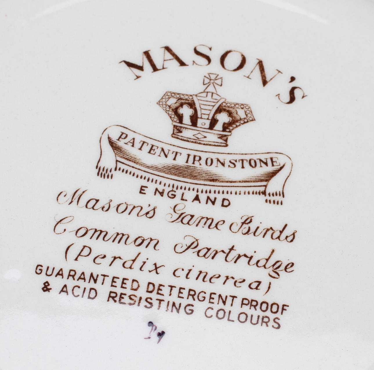 6 Flata tallrikar, Mason´s Game Birds England, dia 26,5 cm.