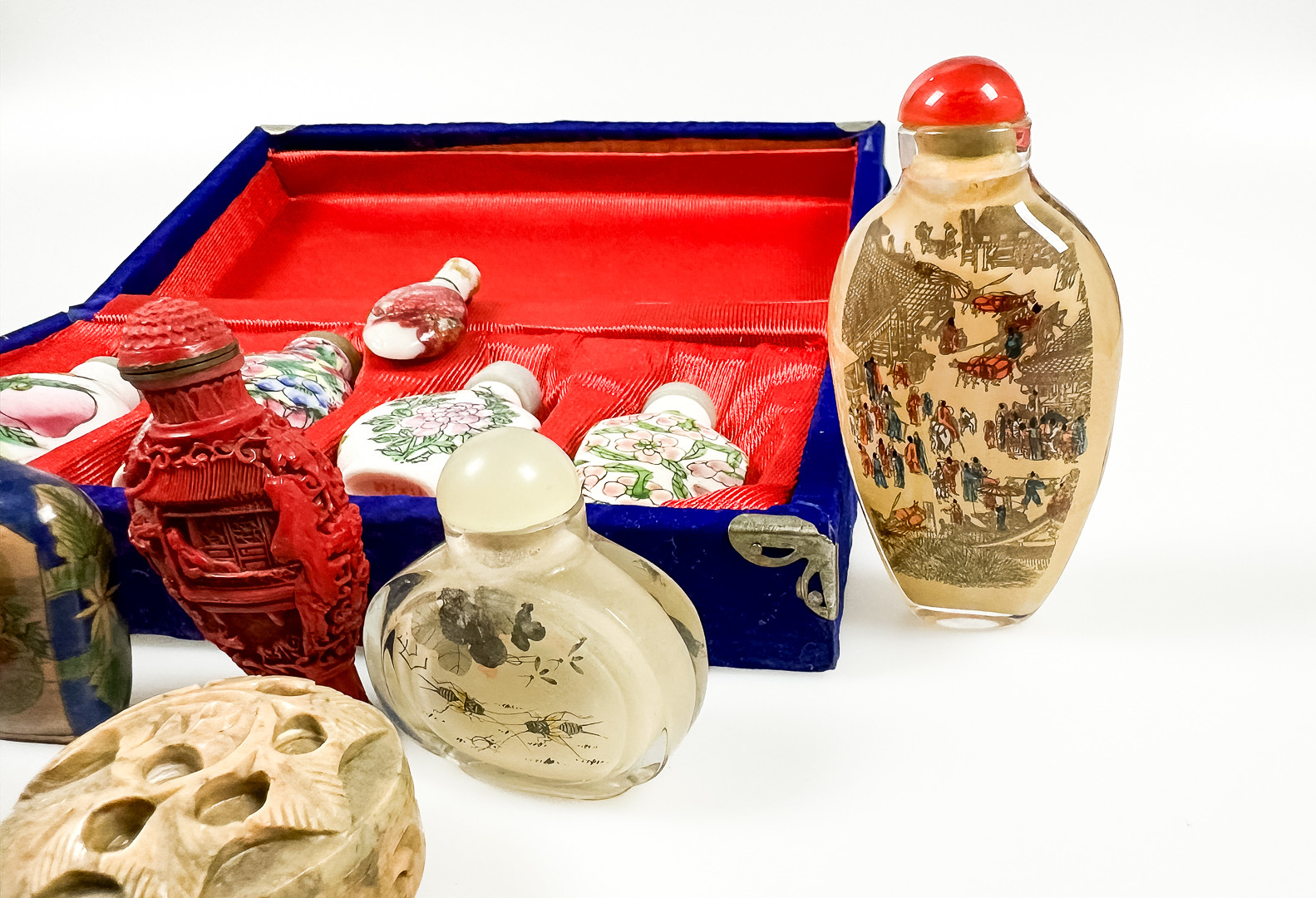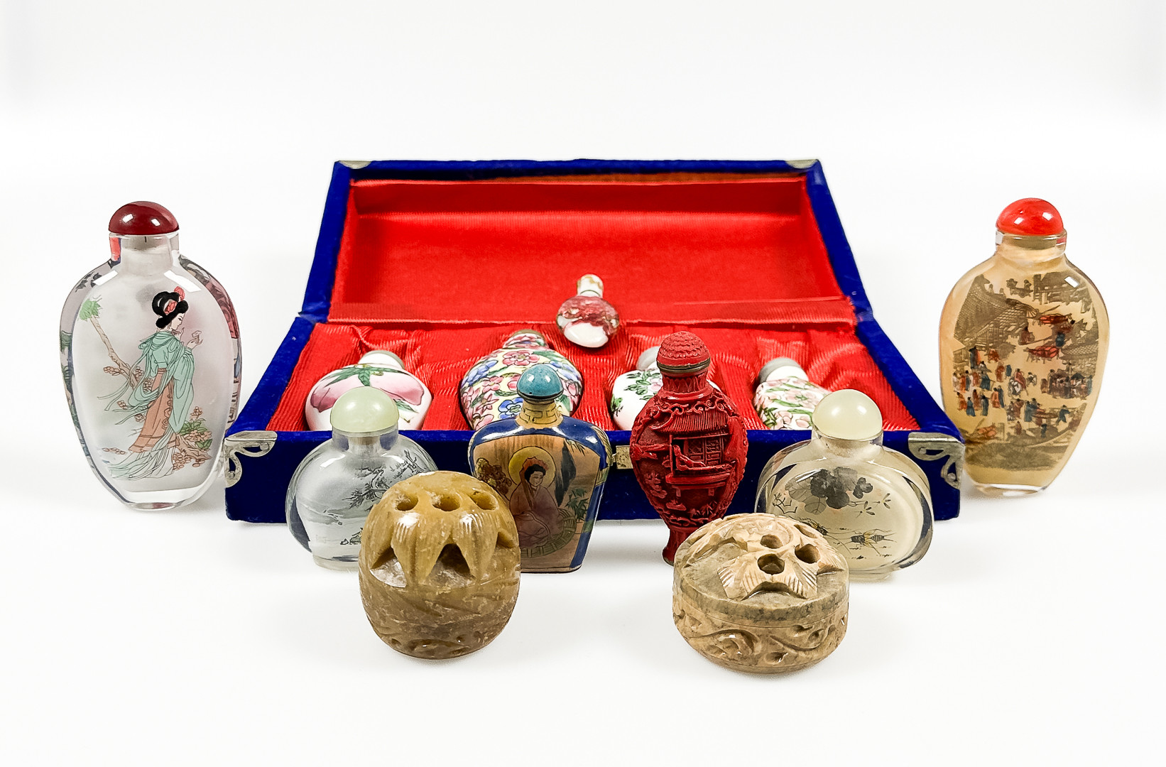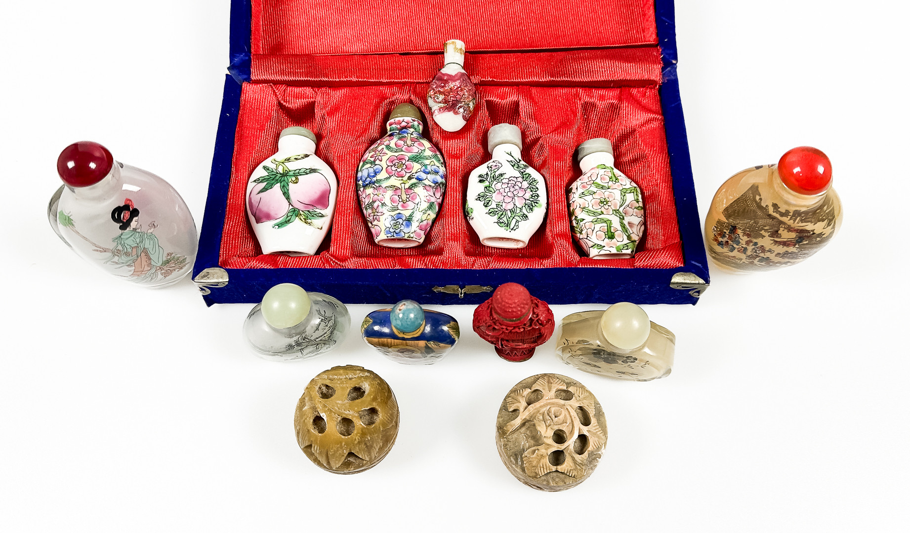4245637. SNUS & PARFYMFLASKOR, 13,st, glas, sten, Kina.