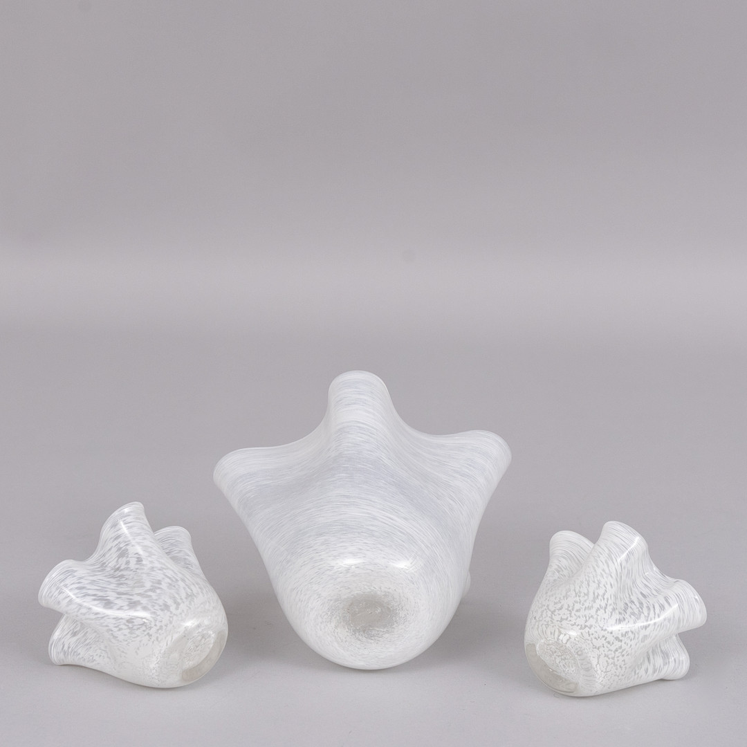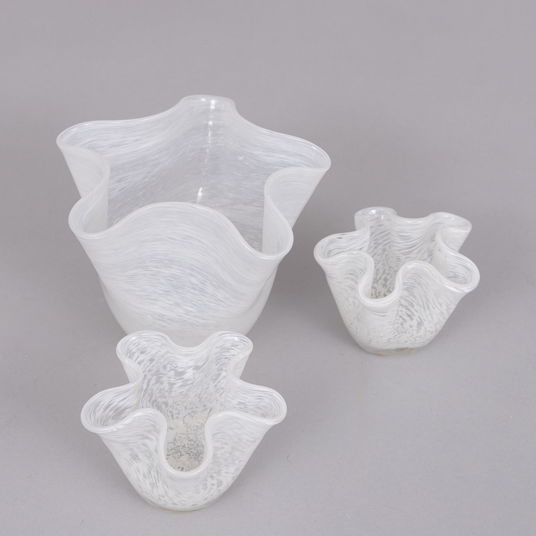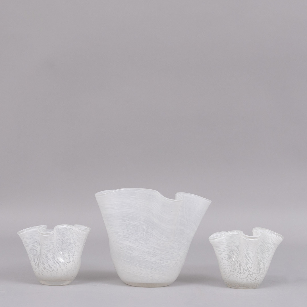 4246852. NÄSDUKSVASER, 3 st, vit glasmassa.