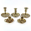 Fem ljusstakar / nattljusstakar i mässing, i olika utförande. Två stycken ljusstakar är märkta "N24" undertill.