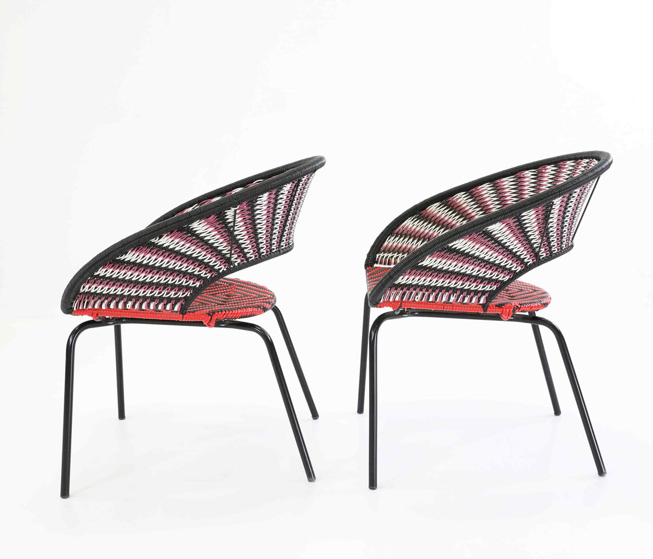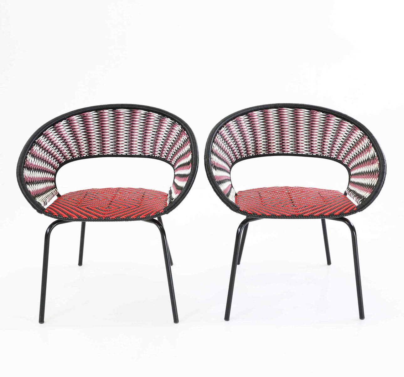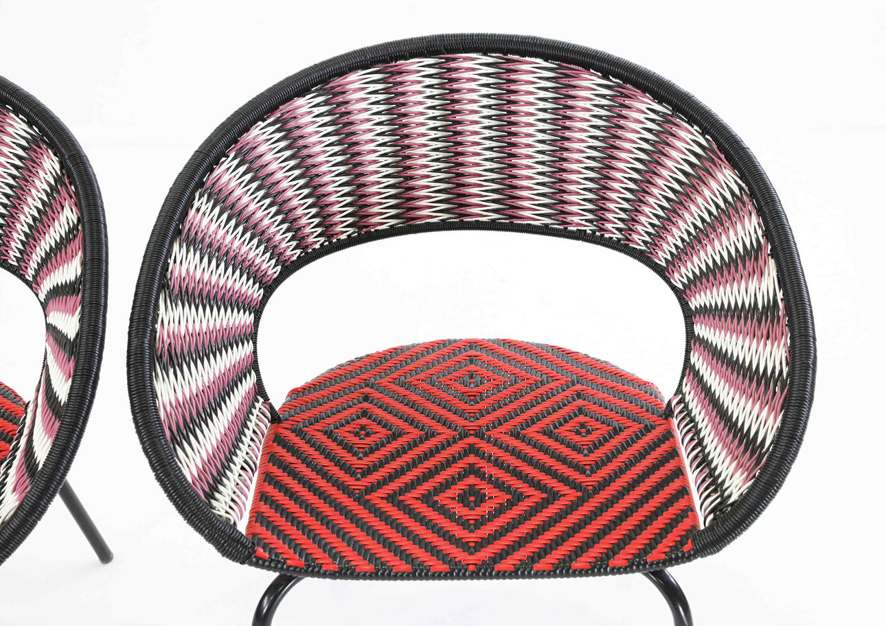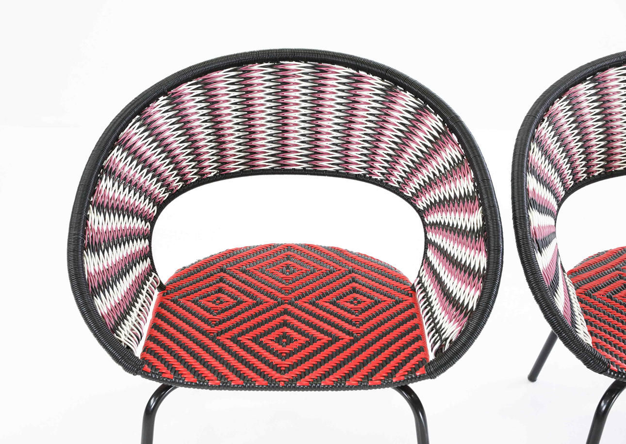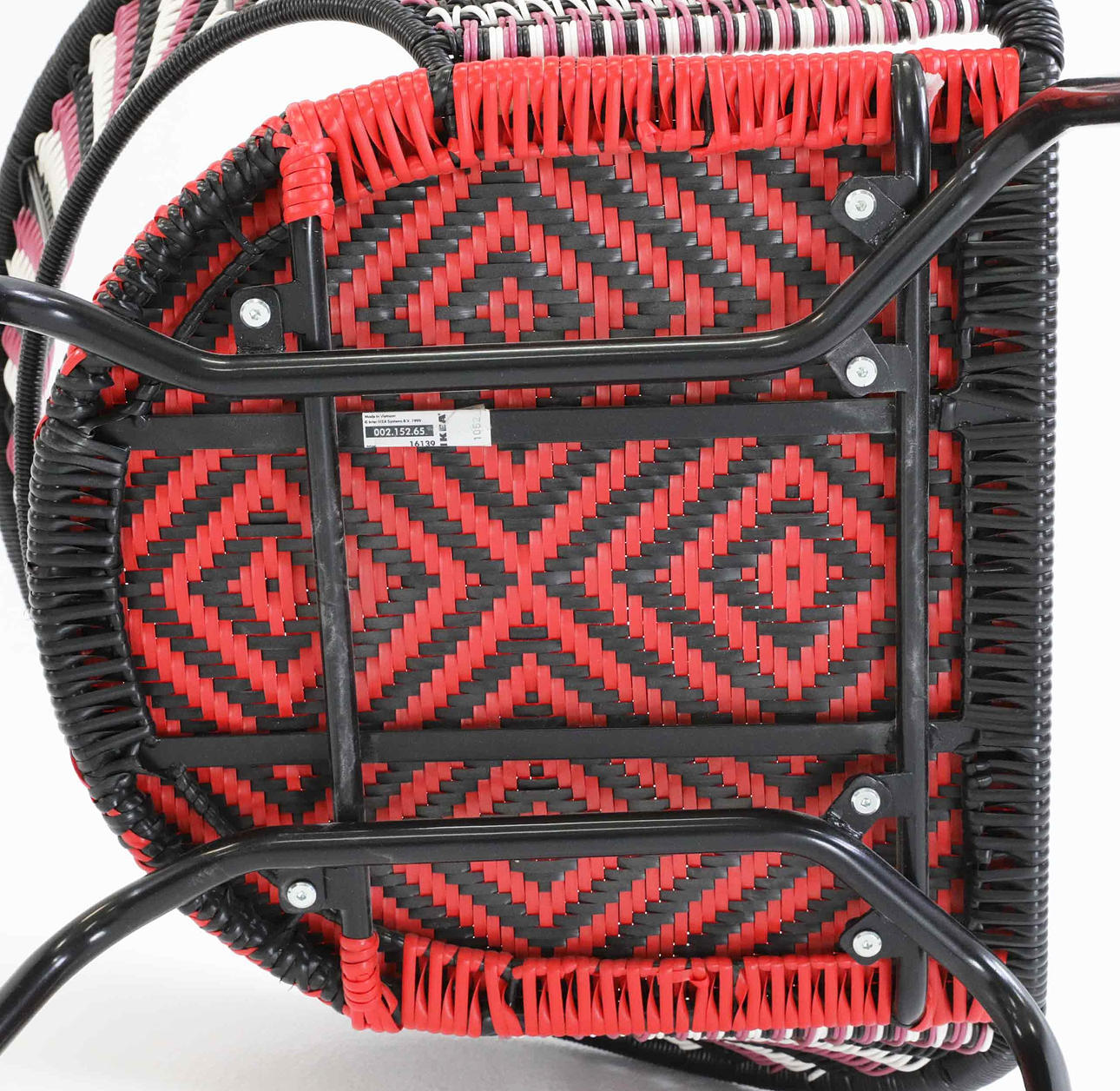 Mönsterflätad sits och rygg på stålställning.