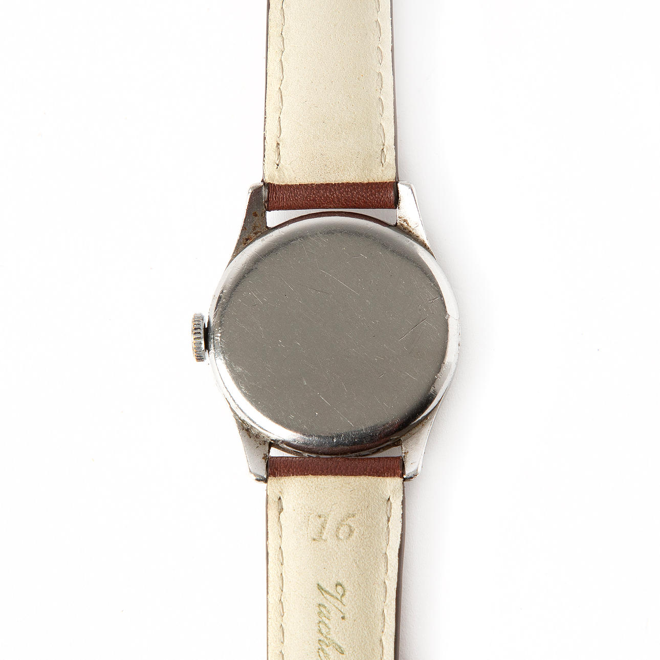 Fungerade ej vid katalogiseringstillfället. Ingen funktionsgaranti lämnas. Servicehistorik okänd. Bruksslitage, glas med repor och urtavla med patina.