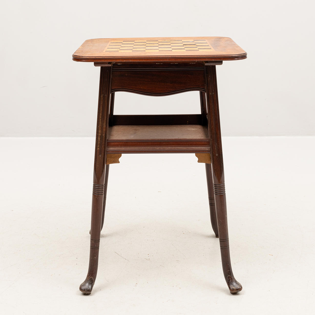 Slitage, fuktskador och fläckar på bordskivan.