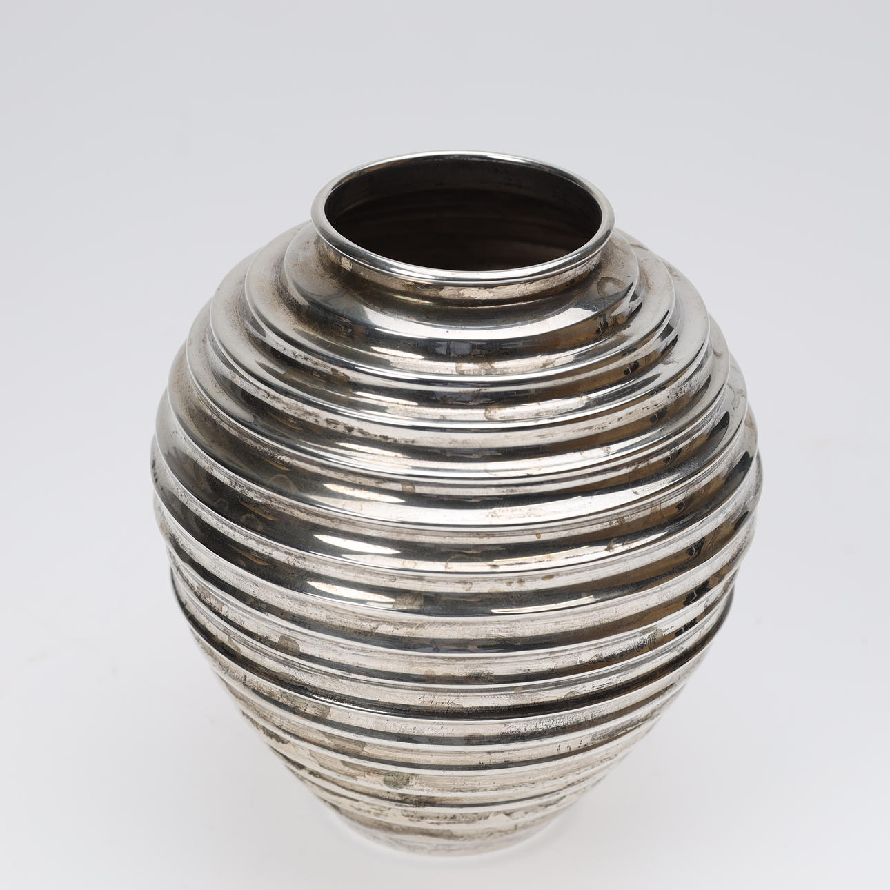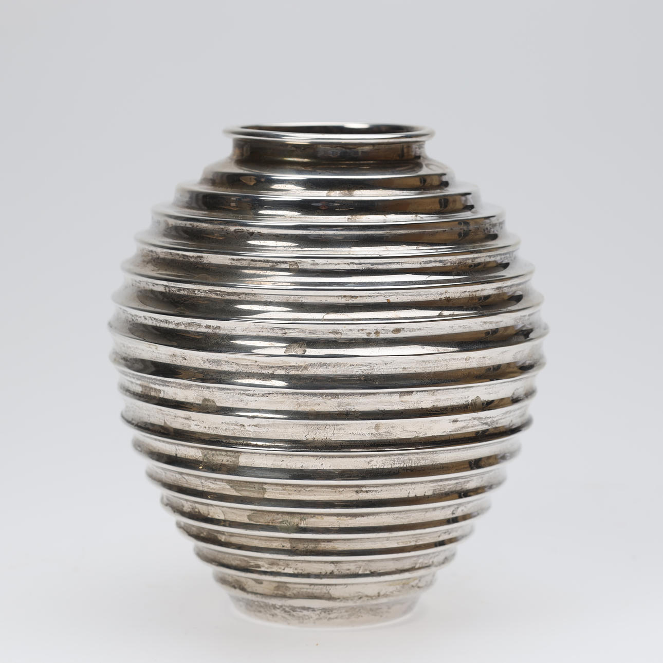 Vas av sterlingsilver med räfflad kropp.