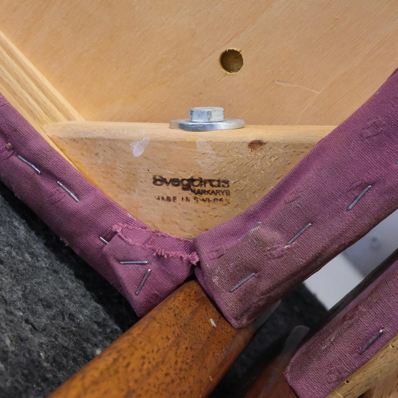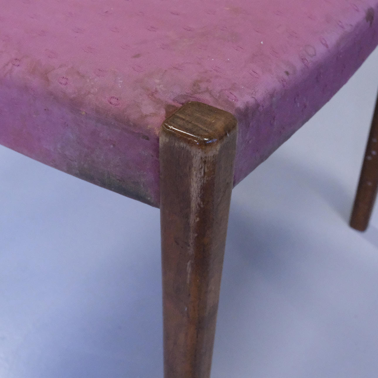 Bruks- och ytslitage. Stomme med patina, sits med fläckar.