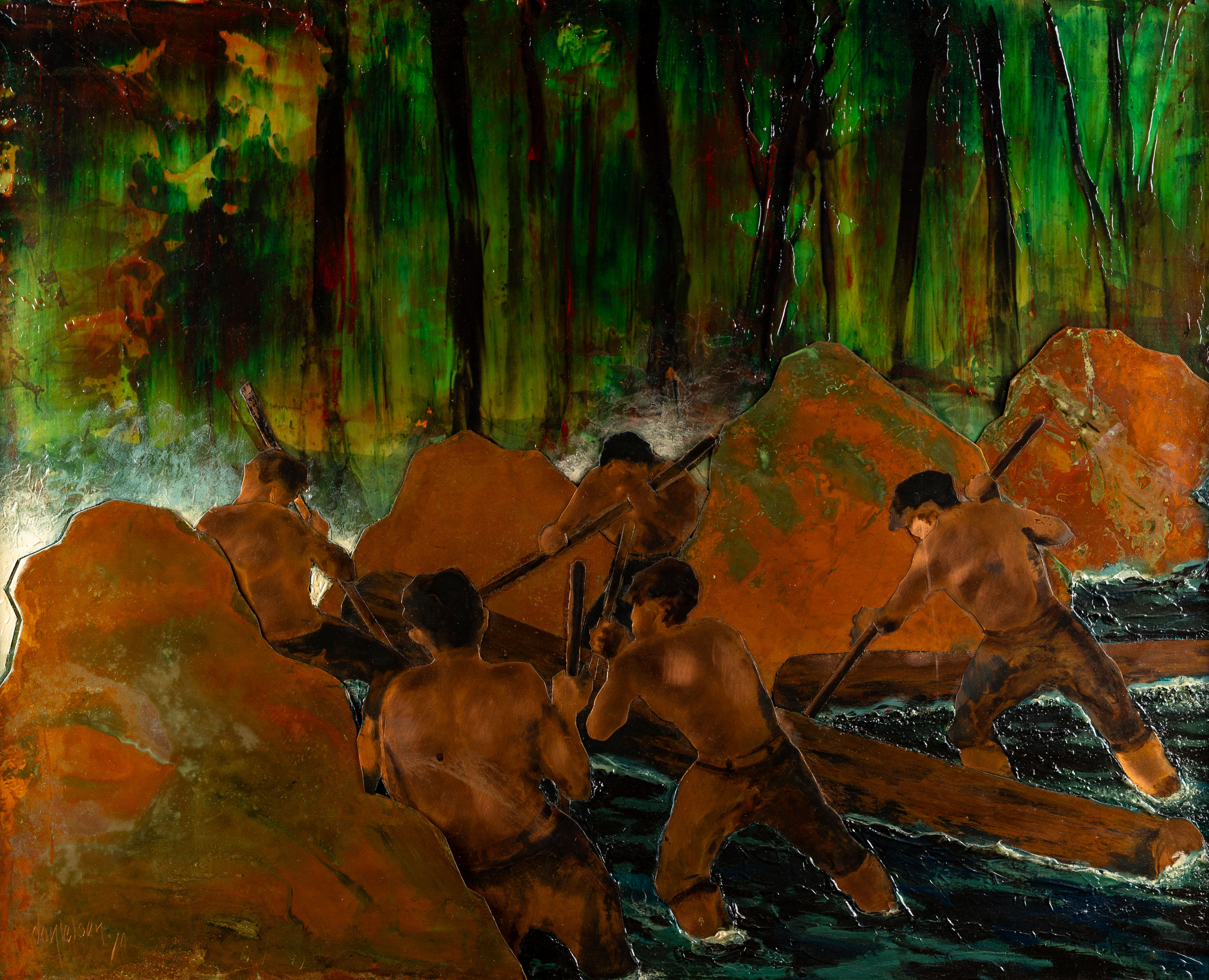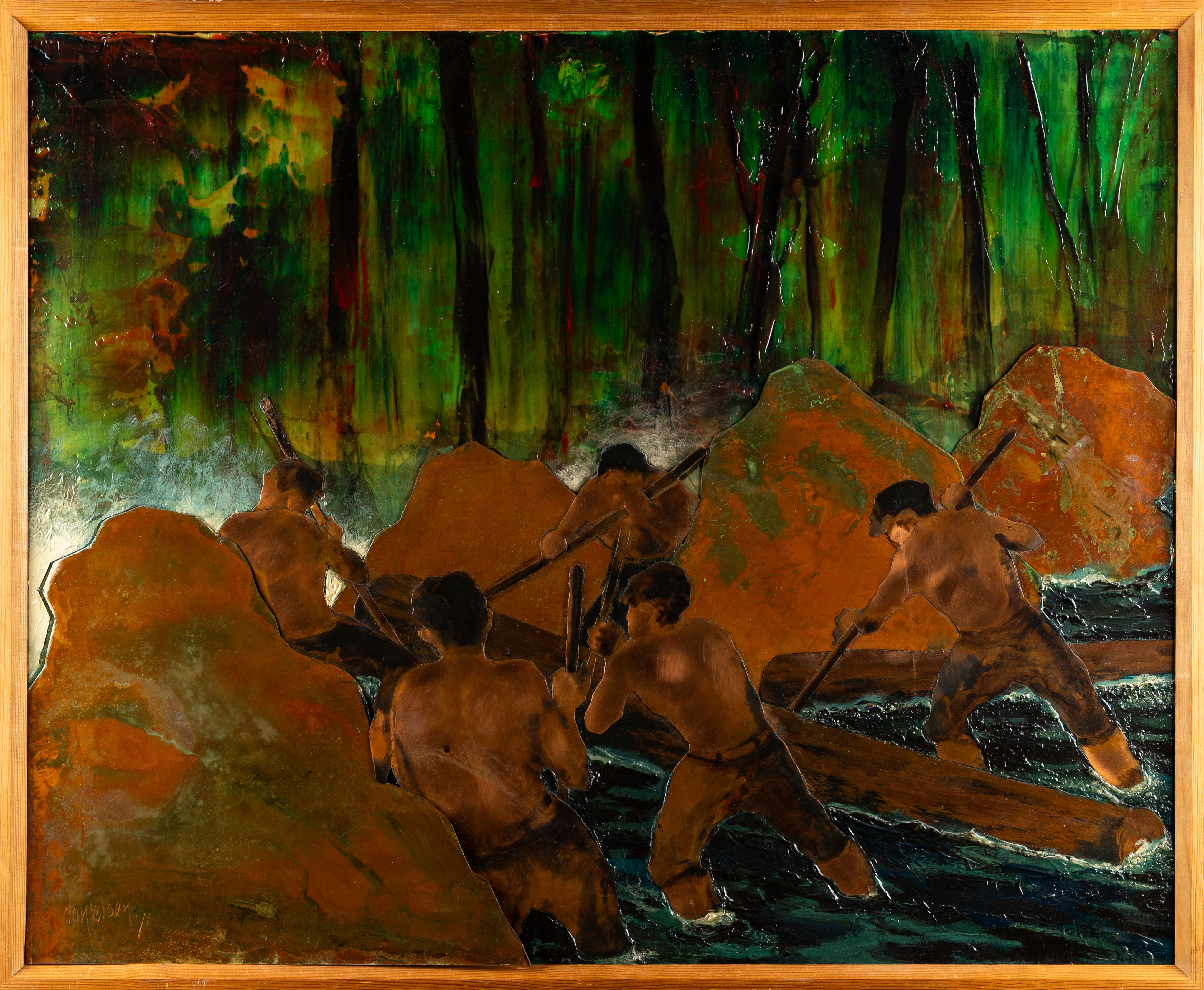 4254157. OIDENTIFIERAD KONSTNÄR. Väggrelief/Tavla Koppar. 1970.