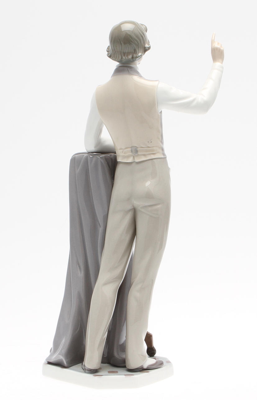 Porslin. Fotograf med kamera. Höjd 35 cm.