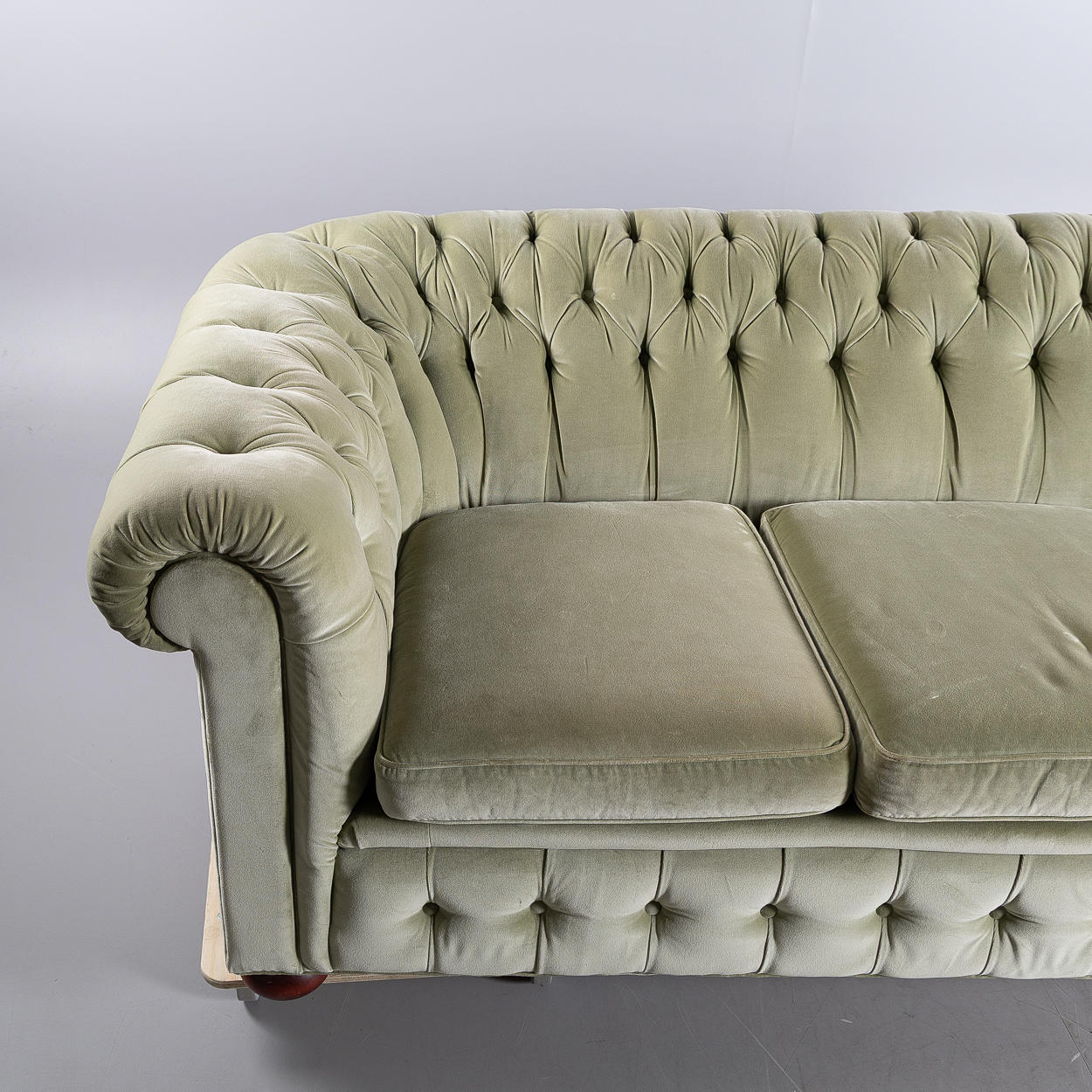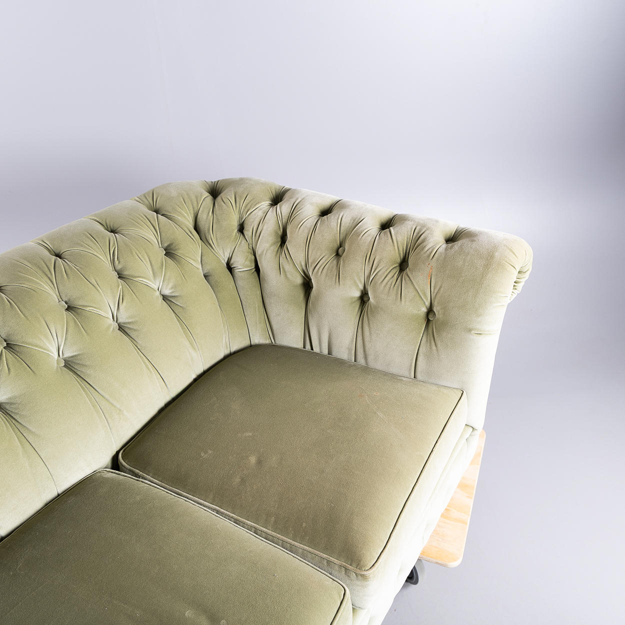 Möjligen Arne Norell, lösa plymåer, djuphäftad, klädsel i sammetsvelour, höjd ca 73, 205x95 cm, sitthöjd 46 cm.