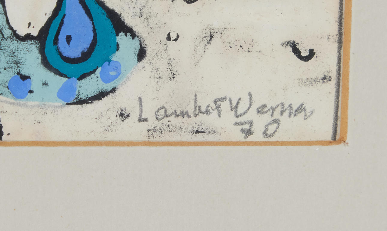 Signerad och daterad Lambert Werner -70, bildmått ca 12x9,5, rammått 29x22 cm UTSTÄLLD: Konstens Stormarknad, Sveagalleriet.