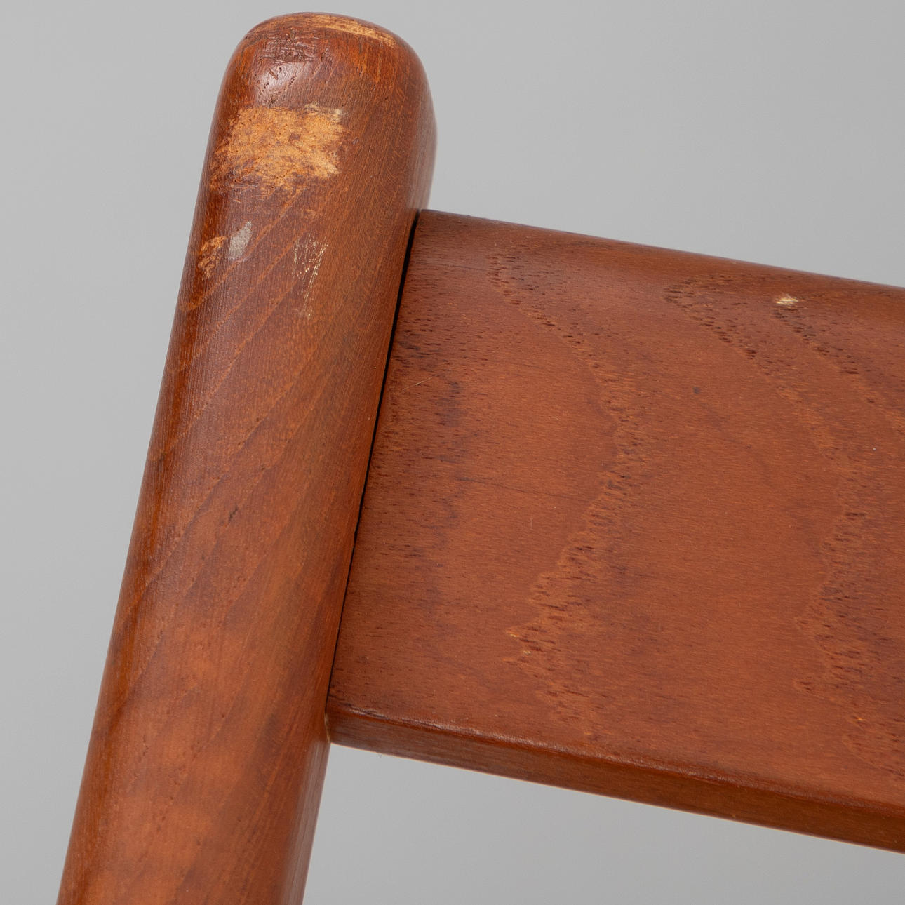 Tecken på slitage, små fläckar på en sittdyna. Ryggstödets övre kanter är slitna.