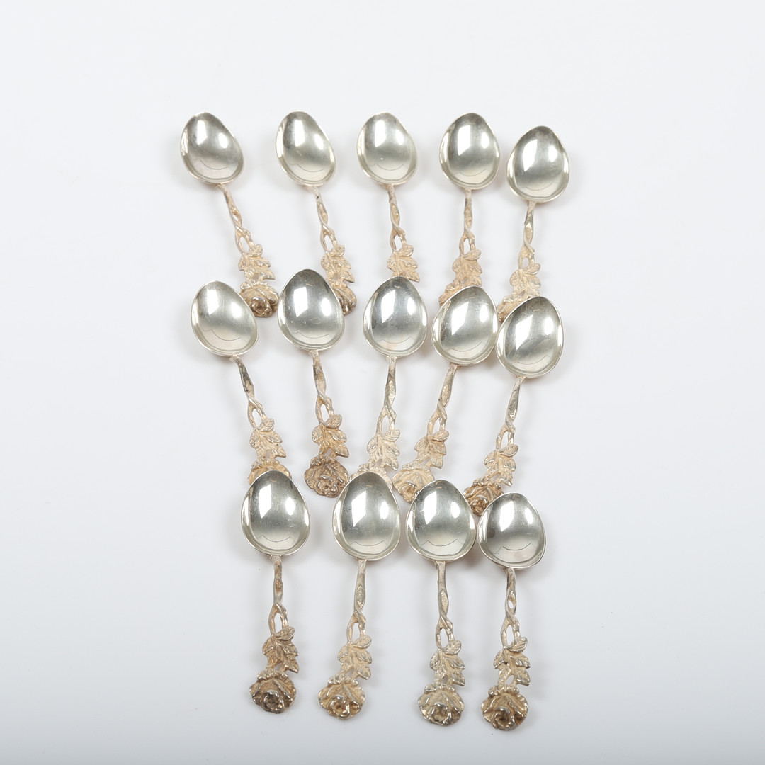 4259913. MOCKASKEDAR, 14 stycken, "Rosen", silver, Gewe.