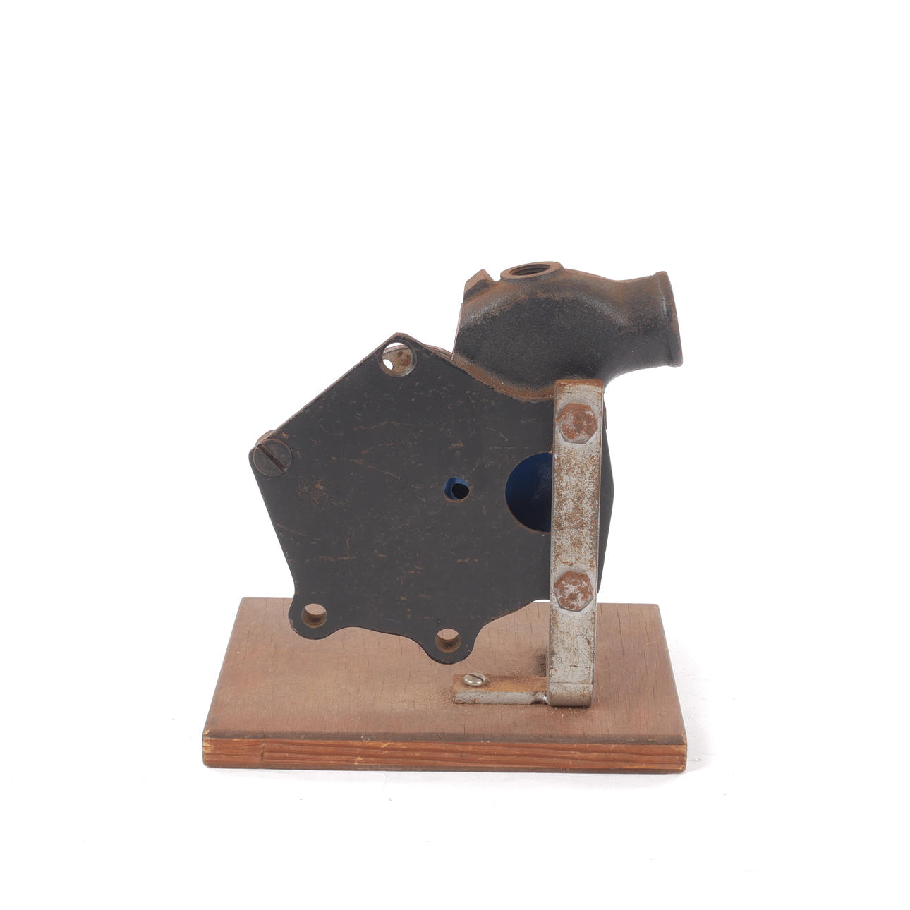 4260019. BILSKOLEUTRUSTNING, vattenpump, trä och järn, 1900-talets mitt.