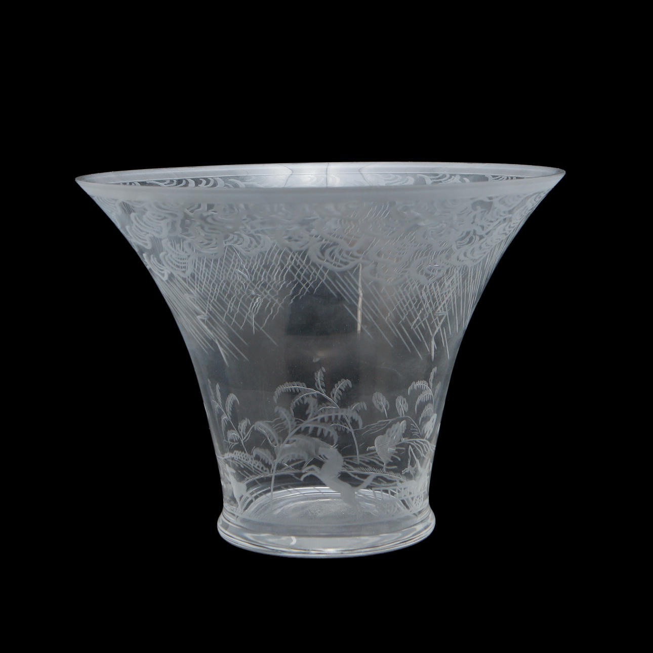 Graverat motiv av åskväder. Signerad Of.H.291.27.S.P (gravör Sten Petersson). Diameter 14,5 cm, höjd 11 cm.