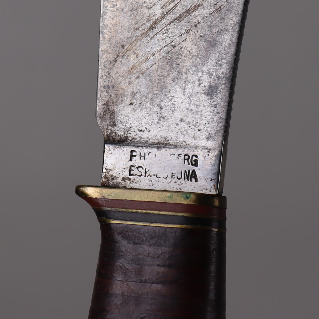 Bladlängd 11,5cm. Läderslida med älgdekor.