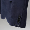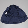 Kavaj samt byxor i blått, upplagda ben gjort på