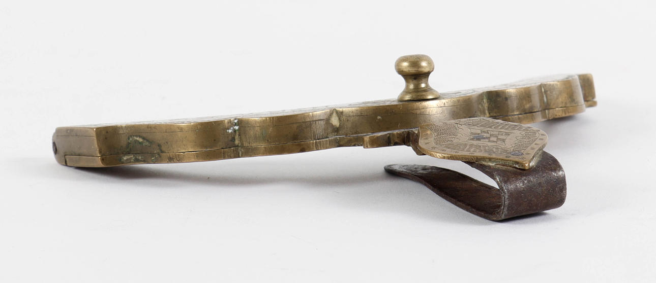 4264040. VÄSKBYGEL mässing, daterad 1834.
