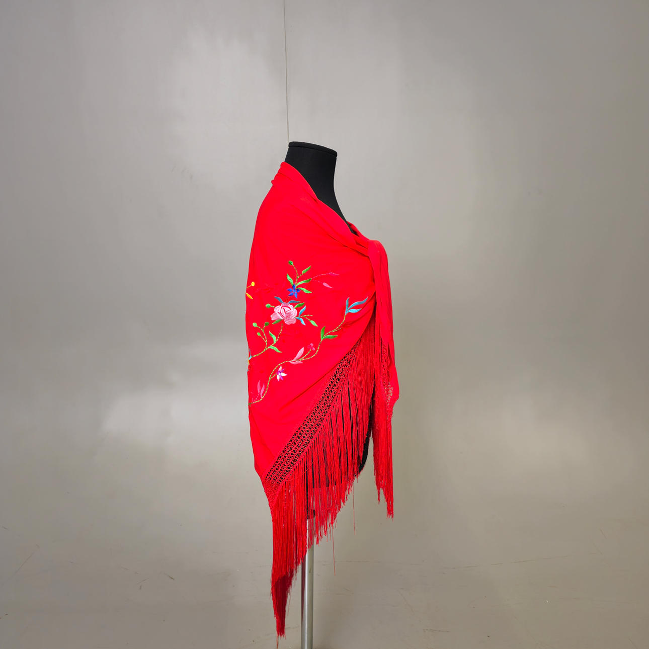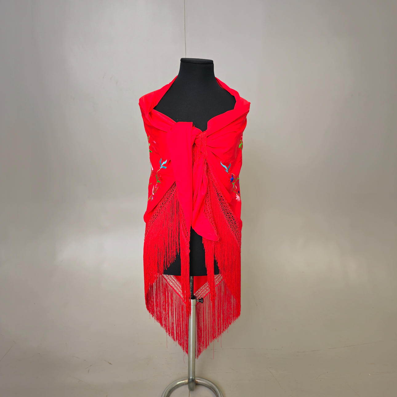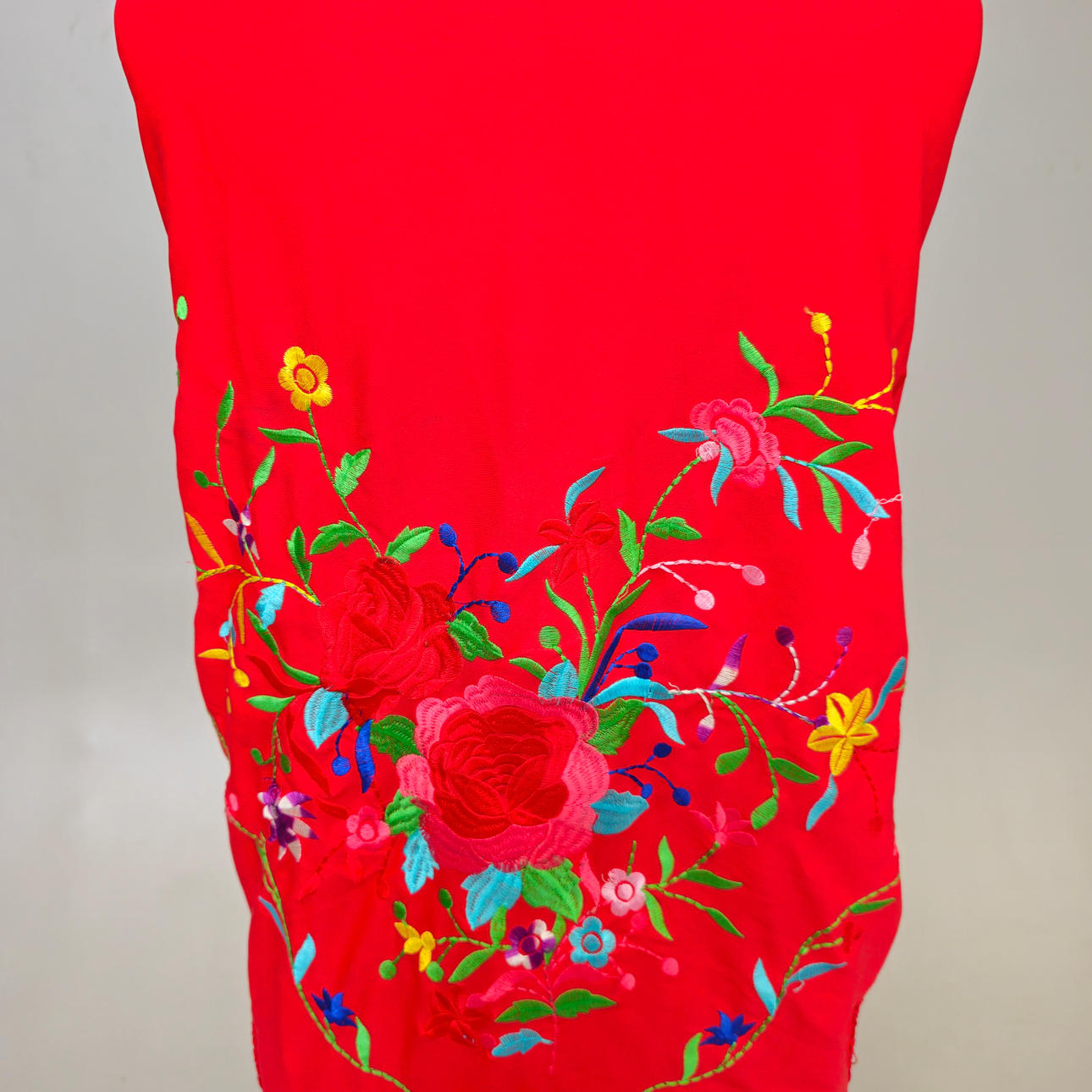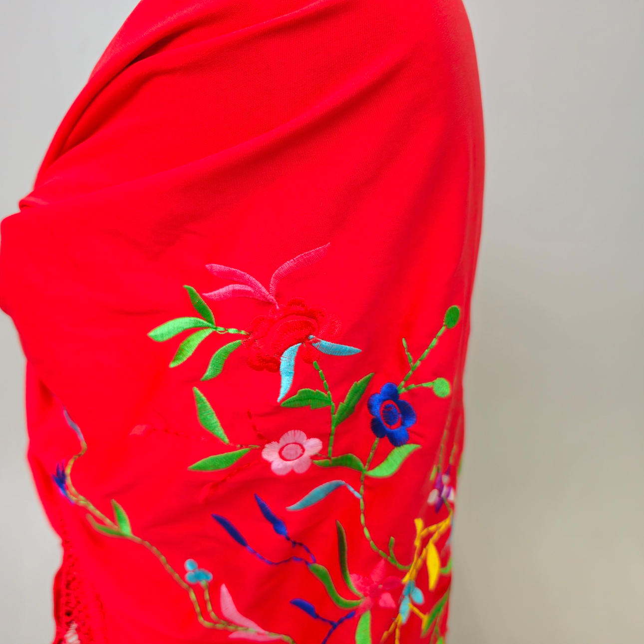 BRODERAD SATIN HALSDUK MED BLOMMOR.